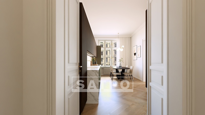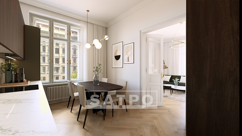 Are you looking for modern housing with a legacy for future generations that has everything you dreamed of? We present to you a premium apartment with a traditional 3+1 layout with two bathrooms and a storage room. Space, privacy, elegance. The corner apartment on the 4th floor of a noble house with an internal area of 120.5 m2 will offer you exceptional family facilities at an address that has style, atmosphere and soul. In Vinohrady Street, we are currently giving life to an apartment building from the early 20th century. It will be ready to provide you with living comfort thought out to the last detail in the spring of 2026. The real estate project of 2024, awarded the Public Award, stands out above all for its respect for history and the preservation of original decorative elements in the exteriors and interiors. It is located just a few steps from Jiřího z Poděbrad Square, Riegrovy sady, stylish cafes, quality schools and a metro station. The historical atmosphere of Královské Vinohrady meets modern comfort here - a combination that you will love. What does the apartment look like? Its layout opens with an entrance hall that immediately takes you to your place of peace, quiet and privacy - a bedroom with a separate bathroom. It also allows you to enter another room, which is also accessible from the spacious living room, from which you can also enter the kitchen with dining room. The common space is closed by another bathroom, a separate toilet and a practical storage room. The apartment and the entire house are defined by top-quality materials and timeless design: - bleached wooden floors - air conditioning in all living rooms - high-quality new windows in the original historical design - white en-suite bathroom with Villeroy & Boch and Grohe equipment All this is complemented by elegant common areas with historical details, a modern elevator, a cellar for each unit, a chip entry system, a videophone and preparation for a smart home. There is also a private wellness area with a sauna and fitness, as well as a green courtyard for moments of peace. There are a total of 31 apartments, 2 accommodation units and 3 commercial spaces in the PO7SKÁ residence. Over 50% of the units have been sold and interest is growing at an unprecedented rate – secure your home in time. Are you ready to write a new story in an extraordinary place? Write to us! We will be happy to tell you more about it.