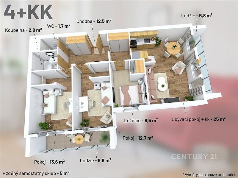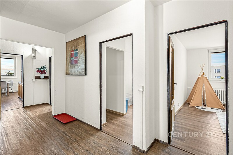 Byt, který nabízí téměř vše Hledáte ideální byt pro větší rodinu? Chcete mít všechno důležité pro život na dosah – obchody, školy, parky i spojení s Prahou? Nebo jste vášniví cyklisté a potřebujete prostor, kam pohodlně uložíte i čtyři kola? Tento byt 4+kk v centru města Vám toho nabízí ještě mnohem víc. Umístění bytu je téměř ideální. Díky velkému počtu oken a třem vstupům na lodžie orientované na východ a jih je byt krásně světlý po celý den. Navíc se nachází v horním patře, což zaručuje naprostý klid a soukromí. Dispozice bytu chytře odděluje společenskou část – kuchyň propojenou s obývacím pokojem – od tří samostatných ložnic, ve kterých nechybí šatny. V chodbě jsou připraveny vestavěné skříně, takže úložného prostoru je opravdu dost. Celková plocha interiéru bytu činí 77 m². Byt má dvě samostatné lodžie o celkové ploše téměř 14 m². První, přístupná z obývacího pokoje, je ideální pro ranní kávu s výhledem do parku nebo na horu Říp. Druhá, orientovaná na jih a přístupná ze dvou pokojů, může plnit třeba praktičtější roli. Velkým bonusem je samostatný, zděný a zabezpečený sklep o ploše 5m2, kam pohodlně uložíte čtyři kola, pneumatiky i další vybavení. Bytový dům prošel všemi zásadními rekonstrukcemi – je zateplený, má nový výtah a upravené společné prostory. O kvalitní správě domu svědčí nejen čistota, ale i sousedské vztahy. Lokalita je perfektní pro ty, kteří chtějí mít vše po ruce. Do pěti minut chůze se dostanete do obchodního centra Central, supermarketů, restaurací, škol, školek i dětských kroužků. Jen 200 metrů od domu jsou autobusové zastávky s přímým spojením po městě i do Prahy. Milovníci aktivního odpočinku ocení blízkost parku Kladenského údolí a lesoparku Lapák s množstvím cyklostezek směřujících například na Křivoklátsko či Okoř. Sportovci mají v okolí k dispozici stadion Sletiště, zimní stadion, fotbalové hřiště, tenisové kurty a mnoho dalšího. Pokud hledáte byt, který nabízí pohodlí, prostor, klid a skvělou polohu, domluvte si prohlídku. Tento byt má opravdu co nabídnout.