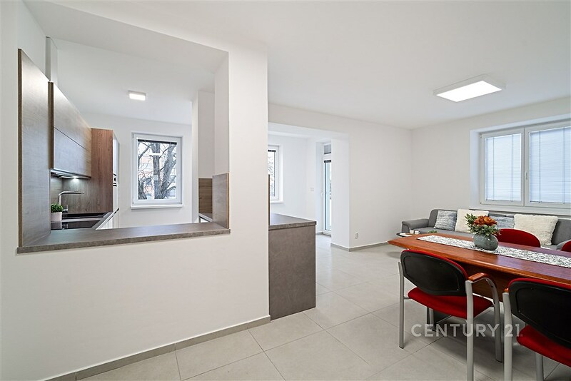 Byt o dispozici 2+kk s užitnou plochou 64 m², který se nachází na ulici Vídeňská třída, nabízíme k prodeji. Nechybí zde balkon 6 m² a 2 sklepy 24 m², které určitě oceníte. ►K bytu náleží také parkovací stání a garáž na vlastním pozemku pro 2 auta. Byt se nachází v prvním patře cihlového domu. Dispozice bytu jsou následující: ►vstupní chodba 6,7 m² je vybavena vestavěnou praktickou skříní a rozděluje byt na dvě části: ►v levé části je koupelna s vanou 4,6 m² (kde je prostor na pračku, je zde el. bojler na ohřev vody), ►samostatná toaleta 1,6 m², ►pokoj/ložnice 15,8 m² (okna situovaná do ulice). ►Pravá část bytu pokračuje do prostorného obývacího pokoje a kuchyňského kouta 36 m², kde dále vstoupíte na balkon 6 m². ►V obývacím pokoji je příprava na krbová kamna. Kuchyň je nyní plně vybavena elektrospotřebiči (vestavěná lednička a mrazák, el. trouba, el. varná deska, myčka, digestoř). V celém bytě je podlahové el. topení a každá místnost má svoji termoregulaci. Ohřev vody je el. bojlerem, který je umístěný v koupelně. PENB Průkaz energetické náročnosti budovy je nyní označen třídou G (zpracovává se a bude doplněn). Nyní je byt pronajímán a pokud byste hledali byt na investici (cena nájmu je 14 000,Kč plus poplatky za energie). Nabízený byt má velmi výbornou polohu. Je kousek od centra města i od přírody. V pěší vzdálenosti na vás čeká příroda, vinařská i cykloturistika, výlety do NP Podyjí a jeho okolí a spoustu dalšího. Loucký klášter i plavecký krytý bazén se nachází 2 minuty chůze pěšky. Lokalita je tedy velmi praktická na dosah centrum dění i příroda a veškerá občanská vybavenost. S financováním Vám rádi pomůžeme. Pro více informací mě již nyní neváhejte kontaktovat.