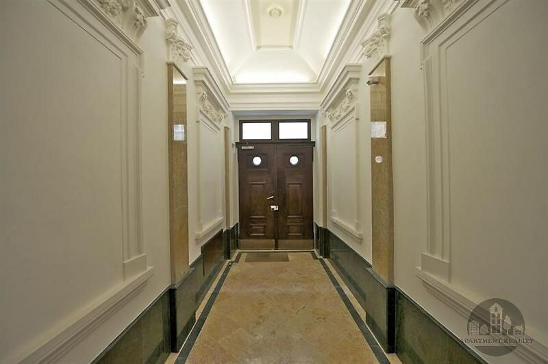 Byt se sestává z obývacího pokoje s kuchyňským koutem, 2 ložnic, 2 koupelen + WC, v 5 patře. Byt je zařízený. Nájem: 26 000, Kč + 1100, Kč domovní služby za osobu (vodné, stočné, úklid domu, výtah, osvětlení v domě atd.) + revize kotle 220 Kč/měsíc + elektřina a plyn na vlastní náklady. Volný ihned. Domácí zvíře dovoleno.