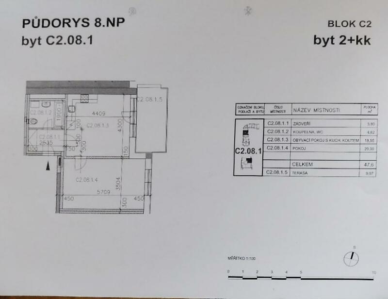 Dovolujeme si vám nabídnout zprostředkování koupě bytu 2+kk s terasou v 8. NP cihlového domu s výtahem na ulici Sedláčkově v Líšni. Dům byl stavebně dokončen přibližně před patnácti lety, majitel je prvním vlastníkem. Byt s užitnou plochou 49 m2 + 10 m2 terasa má východní orientaci s výhledem do vnitrobloku. Z předsíně je vstup do obývacího pokoje s kuchyňským koutem (19 m2) ze kterého je přístupná terasa a druhý pokoj (20m2). Koupelna je vybavena vanou, umyvadlem, otopným žebříkem, přípojkou pro pračku a je společná s toaletou. K bytu náleží zděná sklepní kóje. Na podlahách obytných místností je položena laminátová plovoucí podlaha, v ostatních místnostech je dlažba. Měsíční zálohy na služby a energie pro 3 os. činí 5 169,- Kč (FO 795,- Kč/měs., teplo, voda, správa domu, pojištění, výtahy) + elektrická energie. Ve fondu oprav má SVJ naspořeno 5 mil. Kč. Předpokládané uvolnění bytu dohodou. Občanská vybavenost: obchodní středisko Billa, Lidl, ZŠ Masarova, mateřská škola Strnadova. Výborná dostupnost do centra, zastávka TRAM č. 8 Novolíšeňská.