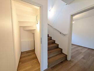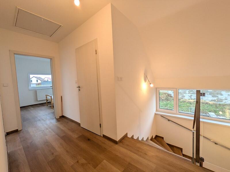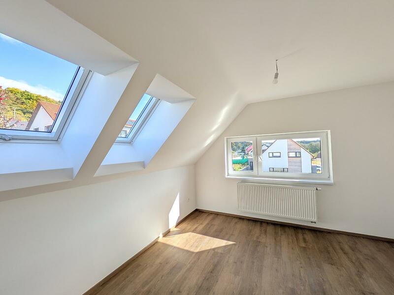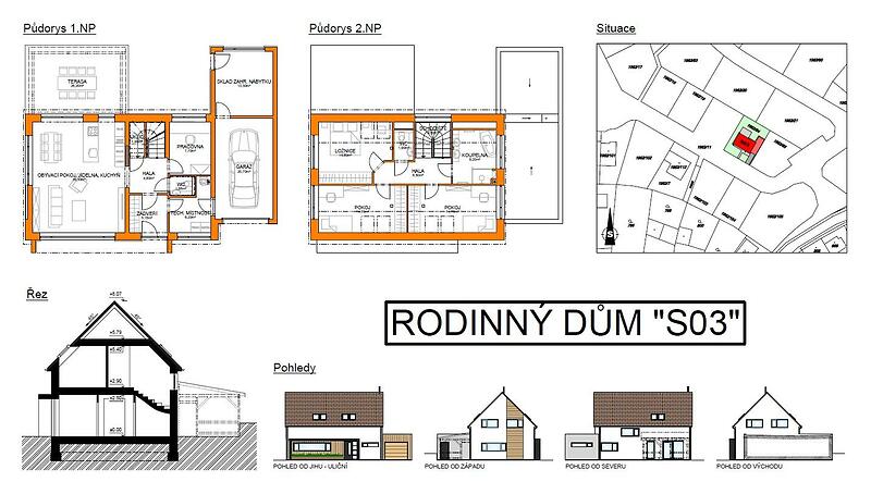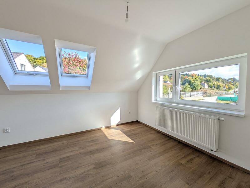 Dovolujeme si vám nabídnout zprostředkování prodej dokončené novostavby rodinného domu, která byla postavena ve druhé etapě developerského projektu v lokalitě Pod Skalkou v Ochozu u Brna. Jedná se o dokončený, zkolaudovaný jednopodlažní dům s obytným podkrovím (označení S03) s navazující terasou a zahradou. Dům je dispozičně řešen jako 5+kk s garáží a skladem (podlahová plocha 158m2), zastavěná plocha domem je 125 m2, okolní pozemek - zahrada 306m2. Konstrukční řešení: železobetonová zákl. deska, nosná konstrukce a dělící příčky z keramických cihelných bloků, stropní konstrukce ze systému Heluz Miako, dřevěný krov zateplený kvalitní tepelnou izolací, střešní krytina z pálené tašky, na terase betonová dlažba, ohřev TUV a vytápění pomocí podlahového topení a deskových radiátorů zajišťuje plynový kondenzační kotel. 1.NP: obývací pokoj s kuchyňským koutem 36 m2 se vstupem na terasu, pracovna 8m2, komora, WC, chodba se zádveřím a schodištěm, technická místnost se vstupem do garáže s navazujícím skladem 13m2. 2.NP: 3x pokoj (14m2) , koupelna, samostatné WC, půdní prostor přístupný po sklápěcích kovových schodech je možno využít pro uložení věcí. Z obývacího pokoje je přístupná dlážděná terasa s opěrnou zídkou na kterou navazuje zahrada. Uliční fronta má JZ orientaci. V lokalitě Pod Skalkou jsou v nabídce RK k prodeji poslední dva rodinné domy S02 a S03 a dále také novostavby vila domů. Obec Ochoz u Brna leží na okraji CHKO Moravský kras v těsné blízkosti lesů, ve vzdálenosti 7 km od hranice městské části Brno - Líšeň. Občanská vybavenost: Česká pošta - pobočka Ochoz u Brna, praktický lékař pro dospělé, ZŠ a MŠ v Ochozu u Brna, Lesní mateřská škola LESINKA, Restaurace Na kovárně, pension. Dostupnost IDS: autobus 201 - Židenice nádraží, Jedovnice; autobus č. 210 - Hostěnice, Bílovice nad Svitavou (žel. stanice).