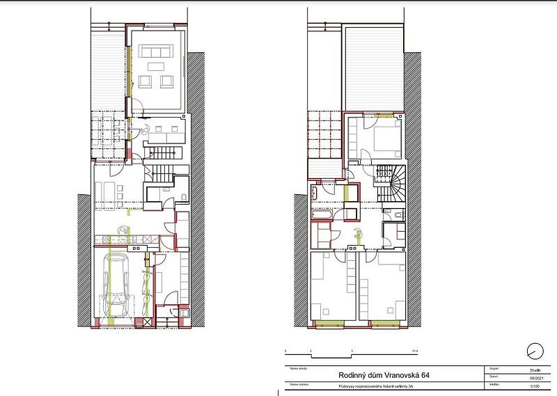 Dovolujeme si vám nabídnout zprostředkování prodeje dvoupodlažního rodinného řadového domu s pěknou zahradou a garáží v Husovicích na ulici Vranovské. K rekonstrukci a přestavbě domu je vypracována studie architektů Kateřiny Pacolové a Bořivoje Čapáka z Ateliéru RAW, splňující požadavek na komfortní bydlení s využitím moderních technologií. Na základě této studie je vydáno platné stavební povolení. Dům nabízí i další možné varianty využití jako je vybudování až pěti menších bytových jednotek, případně možnost podnikání a bydlení, kdy lze využít i samostatný zděný zahradní domek (15m2) pro vytvoření kanceláře, ateliéru nebo dílny. Platné stavební povolení je významným benefitem, který vyřeší současné problémy s digitalizací stavebního řízení a výrazně zkrátí časovou náročnost na rekonstrukci domu. Částečně podsklepený řadový dům, který byl postaven na počátku minulého století, prošel v průběhu let několika stavebními úpravami (vybudování garáže, výměna oken, nové rozvody odpadů a částečně elektřiny, rekonstrukce 2.NP). Zastavěná plocha domem činí 150 m2, výměra zahrady 158 m2, zahradní stavba 15 m2. V zahradě je studna, která nyní slouží k zalévání zahrady, v budoucnu se počítá s vybudováním retenční nádrže a využití užitkové vody v domě. Zahradní stavba je napojena el. energii, nyní možnost vytápění kamny na tuhá paliva. Dispoziční řešení: 1.NP - PP 92 m2 + garáž; vstup do domu, chodba, hala 19m2, pokoj 15m2, pokoj se spací nikou 33m2, kuchyně 12m2, koupelna společná s toaletou, vstup do sklepa a do zahrady, vstup na schodiště do 1.NP; 2.NP PP 80 m2, po rekonstrukci (nové podlahy, omítky, rozvody, obklady, dlažby zařizovací předmět v koupelně a na WC), schodiště, hala, chodba, kuchyně 15m2, 3x pokoj 18,18,12m2, koupelna, WC; terasa 30m2, balkon 4m2, vstup na půdu; Půda PP 75m; Orientace domu Z,V, obytné místnosti díky velikosti oken a prosklených ploch působí velmi příjemně. Dům je napojen na veškeré inženýrské sítě. Vytápění a ohřev TUV zajišťuje plynový kondenzační kotel pomocí deskových otopných těles. Poskytovatelem internetu je společnost Vodafone. Dům je ve vlastnictví jedné fyzické osoby. Dům je volný, připravený k prodeji. MHD: 10 minut do centra, zastávka Mostecká TRAM č. 4 (dvě minuty od domu), zastávka Zdráhalova Tram č. 5.