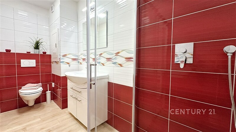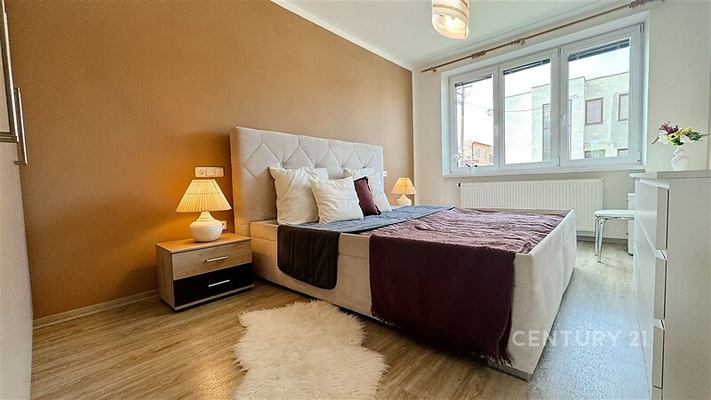 Exklusivně nabízíme pronájem zrekonstruované bytové jednotky 2+kk, v 1.patře (zvýšené přízemí) nemovitosti na ulici Mrštíkova v Rosicích u Brna. Byt má výměru 50,7 m2 a náleží k němu dva zděné sklepy o celkové výměře 12,54 m2 (jeden menší a druhý větší). V ceně nájmu je také možnost užívat pozemek o výměře 62 m2, na jehož části je „domek (místnost)“ na např.skladování věcí a zbylou část pozemku lze využít jako např. parkovací stání. V obývacím pokoji je klimatizace, podlahy v pokojích jsou vinylové, v koupelně je podlahové topení a otopný žebřík. Vytápění a ohřev vody je vlastním plynovým kotlem. Byt je částečně zařízený kuchyňská linka, lednice, vestavná trouba a indukční varná deska, myčka, pračka se sušičkou, jídelní stůl a 4 židle, mikrovlnná trouba, varná konvice, sedací souprava, v ložnici manželská postel, 2 noční stolky, lampičky, skříň, v předsíni botník a v koupelně skříňka pod umyvadlem. Na fotogravii je vidět v ložnici komoda, ta však není součástí vybavení bytu. Na oknech jsou záclony. V těsné blízkosti se nachází pěkné dětské hřiště, bikepark a kuželkářský klub. V Rosicích se nachází zámek s parkem, mateřské školky, dětská skupina a základní škola, lékaři, Penny market, Lidl, Albert, uzenářství, pekárna, restaurace a další infrastruktura. Dostupnost do Brna kromě vlastní dopravy je možná také pravidelnou autobusovou linkou cca 15 minut na Campus (nemocnice Bohunice) nebo vlakem až do centra Brna za cca 30 minut. Byt je vhodný max. pro 2 osoby + 1 dítě. K nemovitosti není vyhotovený štítek energetické náročnosti budov, uvádíme tedy dle zákona nejhorší třídu.