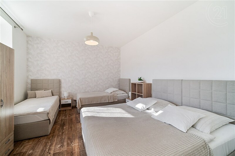 Exklusivní investiční příležitost. Velkorysý a prostorný bytový / apartmánový dům je zavedený a dobře fungující a nabízí možnost krátkodobého i dlouhodobého pronájmu (lze pronajímat jako apartmány i jako byty). V domě se nachází 8 nadčasově zařízených apartmánů o velikosti 35125 m2 a kapacitou 2 až 8 osob. Kolaudováno jako byty. Apartmány jsou kompletně zařízené včetně kuchyňské linky se spotřebiči a nádobím, koupelen a obytných místností. Prodej je včetně zařízení. V domě je vybudovaný výtah, takže je dům bezbariérový. Teplo zajišťuje horkovod. U domu je 8 parkovacích míst, tj. pro každý apartmán 1 parking. Zahrada slouží pro relaxaci hostů, je zde umístěná vířivka a gril. U domu je pozemek s vybudovanými přípojkami, který lze využít na stavbu dalších 2 apartmánů ( je již vyhotovený návrh) nebo jiný způsob využití. Apartmány: Apartmán 1 Apartmán o dispozici 2 + kk s kapacitou 4 osoby, o výměře 42 m2, se nachází v I. nadzemním podlaží. Skládá se z předsíně, obývacího pokoje s kuchyňským koutem, ložnice, koupelny se sprchovým koutem a toaletou. Apartmán 2 Apartmán o dispozici 2 +kk s kapacitou 4 osoby, o výměře 49 m2, se nachází ve II. nadzemním podlaží. Skládá se z předsíně, obývacího pokoje s kuchyňským koutem, ložnice, koupelny se sprchovým koutem a toaletou. Apartmán 3 Apartmán o dispozic 2+kk s kapacitou 4 osoby, o výměře 60 m2, se nachází ve II. nadzemním podlaží. Skládá se z předsíně, obývacího pokoje (s odpočinkovou a spací zónou) s kuchyňským koutem, ložnice, koupelny se sprchovým koutem a toaletou. Apartmán 4 Apartmán o dispozici 1+kk s kapacitou 2 osoby (příp. i malé dítě), o výměře 35 m2, se nachází ve II. nadzemním podlaží. Skládá se z předsíně, obývacího pokoje (s odpočinkovou a spací zónou) s kuchyňským koutem, koupelny se sprchovým koutem a toaletou. Apartmán 5 Apartmán o dispozici 2+1 s kapacitou 5 osob, o výměře 72 m2, se nachází ve III. nadzemním podlaží. Skládá se z předsíně, kuchyně, obývacího pokoje (s odpočinkovou a spací zónou), ložnice, koupelny se sprchovým koutem a toaletou. Apartmán 6 Apartmán o dispozici 2+1 s kapacitou 5 osob, o výměře 72 m2, se nachází ve III. nadzemním podlaží. Skládá se z předsíně, kuchyně, obývacího pokoje (s odpočinkovou a spací zónou), ložnice, koupelny se sprchovým koutem a toaletou. Apartmán 7 De Luxe apartmán o dispozici 2+1, o výměře 125 m2 s kapacitou 8 osob, se nachází v I. nadzemním podlaží. Skládá se z předsíně, kuchyně, obývacího pokoje s jídelní a odpočinkovou zónou, ložnice, koupelny se 2 sprchami a 2 samostatných toalet. Apartmán 8 Nově vybudovaný apartmán o dispozici 2+1. Skládá se z předsíně, obývacího pokoje, ložnice, kuchyně, koupelny a toalety. Neváhejte mě kontaktovat pro víc informací. Doporučuji prohlídku tohoto nádherného apartmánového domu! Budete překvapeni jeho velikostí.