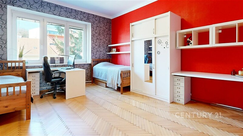Exkluzivně nabízíme k prodeji komfortní prostorný byt dispozice 3+1 s celkovou výměrou 125,4 m², v atraktivní lokalitě městské části Brno – Štýřice, v ulici Vídeňská, s terasou, infrasaunou a podílovým vlastnictvím (1/11) společné zahrady. Vnitřní užitná plocha bytu: 104,3 m2. Plocha terasy: 12,2 m2. Plocha zděného sklepu: 8,9 m2. Výměra zahrady: 435 m2. Kompaktní dispozice bytu nabízí samostatné vstupy z prostorné haly do všech pokojů, šatny, rekonstruované koupelny a odděleného WC. V případě potřeby lze zpřístupnit nyní sádrokatronem zaslepené dveře mezi místnostmi 5 a 6 (viz 3D plánek ve fotografiích). Z kuchyně se pak vstupuje na terasu s nádherným výhledem na Petrov, Špilberk a stadion SK Moravská Slavia Brno. Vybavení obývacího pokoje saunou, samostatná šatna, prostorná terasa, velký sklep i podíl na společně užívané zahradě, umocňují komfort bydlení v této účelně řešené bytové jednotce. Dům s 2 roky novým výtahem se nachází v oblíbené lokalitě, přímo u zastávky MHD se skvělým spojením do centra města a okolních lokalit. V okolí je plná občanská vybavenost – obchody, restaurace a další služby. Přátelské sousedské vztahy přispívají k příjemnému a klidnému bydlení. 200 m od domu k dispozici volné městské podzemní garáže k pronájmu. V blízkosti dále nemocnice (250 m), prestižní spádová jazyková ZŠ Bakalka (480 m), mateřská škola Vídeňská (270 m), cyklostezka podél řeky Svratky (350 m) a vrch Červený kopec (800 m) se stejnojmennou národní přírodní památkou. D1 vzdálená jen 2,5 km, centrum města a hlavní nádraží pouhých 1,6 km.