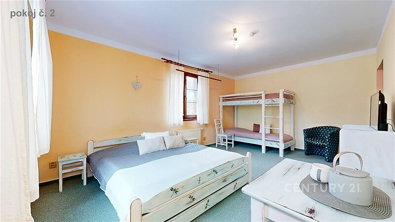 Exkluzivně nabízíme k prodeji vyhlášenou Johannovu boudu, tradiční horský objekt s dlouhou historií, zasazený do malebné krajiny Krkonoš. Pokud hledáte investiční příležitost v oblasti cestovního ruchu, nebo vysněné místo pro rekreaci s neopakovatelnou atmosférou, jste na správné adrese! Objekt, postavený na základech původní Johannovy boudy v r. 2010, je provozovaný jako penzion s restaurací o celkové výměře 844 m2. Nachází na výjimečném místě přímo u lanovky Herlíkovice – Bubákov a díky zavedenému jménu a historii je oblíbeným místem mezi turisty i místními. Co Vám Johannova bouda nabídne: penzion se 7 pokoji a celkem 28 lůžky; restaurace s kapacitou 80 míst, s plně vybavenou kuchyní, venkovní terasou a nově zrekonstruovanými toaletami pro hosty restaurace; byt dispozice 3+kk se samostatným vchodem; byt dispozice 1+kk; 3 pokoje pro personál s kapacitou celkem 8 lůžek; lyžárna; dostatečné množství skladovacích prostor pro provoz restaurace i penzionu; 8 parkovacích míst na vlastním pozemku. Penzion: Johannova bouda disponuje celkovou kapacitou 28 lůžek. Ubytování je rozděleno do sedmi částečně zrekonstruovaných pokojů: 1 × dvoulůžkový pokoj s manželskou postelí; 4 × čtyřlůžkový pokoj s manželskou postelí a palandou; 2 × pětilůžkový rodinný pokoj s manželskou postelí, samostatným lůžkem a palandou. Každý pokoj má vlastní sociální zařízení, TV a WiFi připojení. Restaurace: Jedná se o stylový prostor, který kombinuje samoobslužný bufet s tradiční krkonošskou hospůdkou. Využívá se nejen pro každodenní stravování hostů, ale také pro pořádání svateb, rodinných oslav, firemních akcí, školení, seminářů či přátelských setkání. V mimosezónním období je restaurace ideálním místem pro uzavřené akce. Nemovitost je situována na klidném místě s nádhernými výhledy do okolní krajiny. Díky své poloze je snadno dostupná jak v zimní, tak letní sezóně – v blízkosti se nachází sjezdovky, běžecké tratě, turistické stezky i cyklotrasy. Bouda je průběžně udržovaná, napojená na všechny inženýrské sítě (voda, elektřina, kanalizace, vytápění). Krom veřejného vodovodu také užitková voda pro sprchy a splachování. V posledních letech prošla částečnými rekonstrukcemi (např. okna, střecha, interiéry). Zavedená značka s historií a stálou klientelou nabízí díky možnostem k rozšíření služeb (celoroční provoz, wellness, akce, firemní pobyty) velmi zajímavý investiční potenciál.