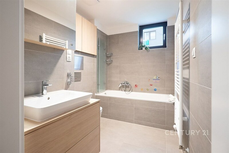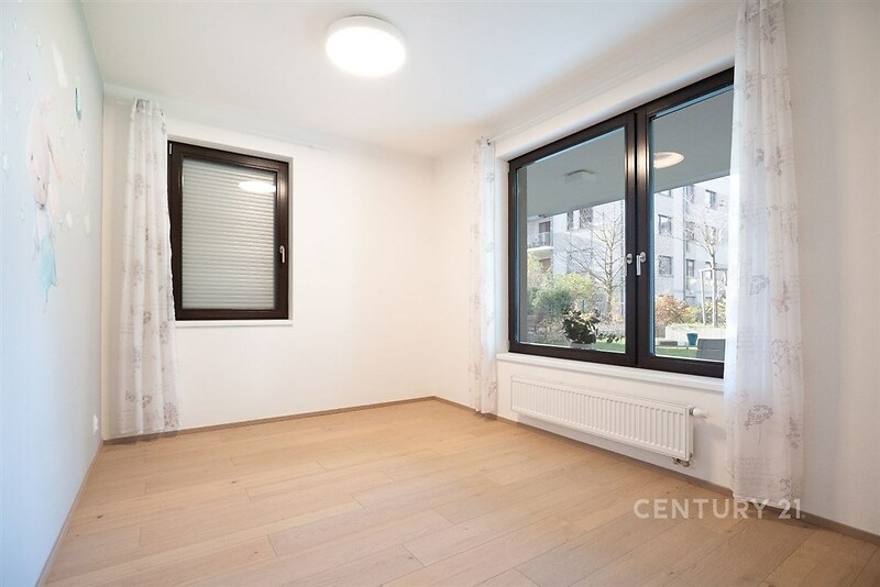 Exkluzivně nabízíme ke koupi moderní a prakticky řešený byt o dispozici 3+kk s terasou, předzahrádkou, garážovým stáním a sklepem. Byt má výměru 84 m2 (+ 20 m2 terasa + 223 m2 předzahrádka) a nachází se v přízemí pětipodlažního domu, polohou v klidné oblasti v Praze, Dolních Chabrech. Byt disponuje vstupní chodbou/předsíní, ze které je přístup do obývacího pokoje s kuchyňským koutem, z předsíně je zároveň vstup do samostatného WC. Z obývacího pokoje se vstupuje do menší předsíně, ze které se vstupuje jak do dvou samostatných pokojů, tak do koupelny (umyvadlo, vana a toaleta). Z obývacího pokoje je přístupná i terasa, na kterou navazuje předzahrádka. Kuchyňský kout nabízí kuchyňskou linku s mramorovou pracovní deskou, barovým pultem a kompletním vybavením elektrospotřebiči: indukční varná deska, trouba, digestoř, lednice s mrazákem. V předsíni a ložnici jsou k dispozici prostorné vestavěné skříně, jako podlahové krytiny jsou použity plovoucí podlaha s dřevěnou dýhou a dlažba, okna dřevěná, orientovaná na jih a západ. Předzahrádka je rovinatá, zatravněná, osázená stromy (3) a keři, navíc vybavená uzamykatelným přístřeškem na nářadí a přívodem vody. Dům samotný je ve velmi dobrém stavu, je součástí projektu Nové Chabry s dokončením v roce 2021. Byt nabízí pohodlné bydlení s dobrou dostupností všech služeb občanské vybavenosti (škola, školka, obchody atd.). V blízkosti domu se nachází dětské hřiště, nedaleko je Ďáblický háj. Výborná je i dopravní dostupnost, a to jak autem, tak MHD (metro C Kobylisy cca 4 min. autobusem, cca 10 min na tram. zastávku Vozovna Kobylisy). Provozní náklady: záloha na služby (byt i garážové stání) – 6.000 Kč, fond oprav – 420 Kč. Pro více informací nebo sjednání prohlídky volejte makléři.