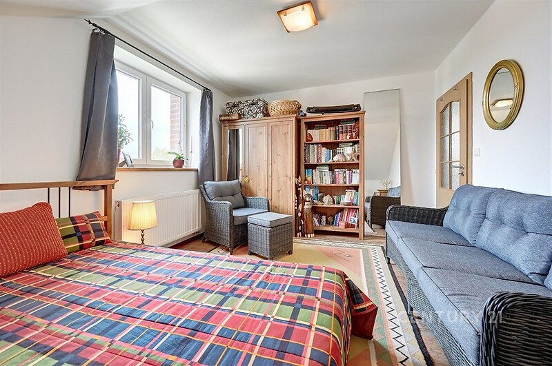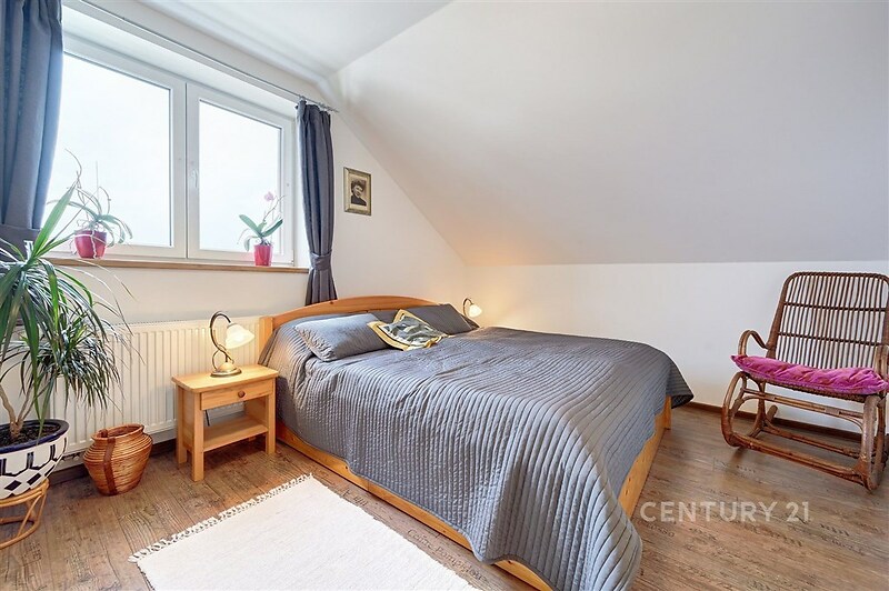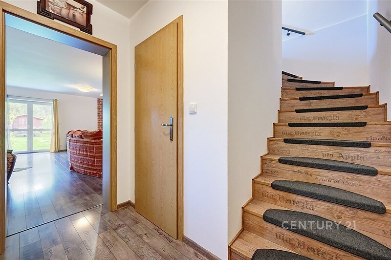 Exkluzivně nabízíme na prodej bytovou jednotku o dispozici 5+kk se zahrádkou v ulici Chmelová v Hlubočince. Bytová jednotka se nachází v bytovém domě o 2 bytových jednotkách, postaveném z kvalitních cihel Porotherm. Dům je navíc zateplen. V přízemí bytové jednotky se nachází předsíň, technickou místnost, koupelnu s WC, pokoj pro hosty, velký obývací pokoj propojený s kuchyňským koutem a výstupem na jižně orientovanou terasu, na kterou navazuje pěstěná a rovinatá zahrada. V patře se nacházejí 2 samostatné ložnice a další prostorný pokoj a druhá koupelna. Byt je skvěle udržovaný a můžete se do něj po koupi ihned nastěhovat bez dalších úprav. Dům je napojen na obecní vodovod a kanalizaci, vytápění je vyřešeno elektrokotlem Protherm. V obývacím pokoji si navíc můžete zatopit v krbových kamnech. Náklady na provoz jsou velmi nízké, necelé 3 tisíce Kč měsíčně, včetně vody a elektřiny. Je zde také jímka na dešťovou vodu. Na pozemku pohodlně zaparkujete až 3 osobní auta. V obci je restaurace, sportovní hala, hned za hranicí obce Lidl, další obchody najdeme v nedaleké Jesenici nebo Kamenici. Autem se do Prahy dostanete za 15 min, pravidelné spojení PID na metro C Budějovická. Doporučujeme prohlídku.