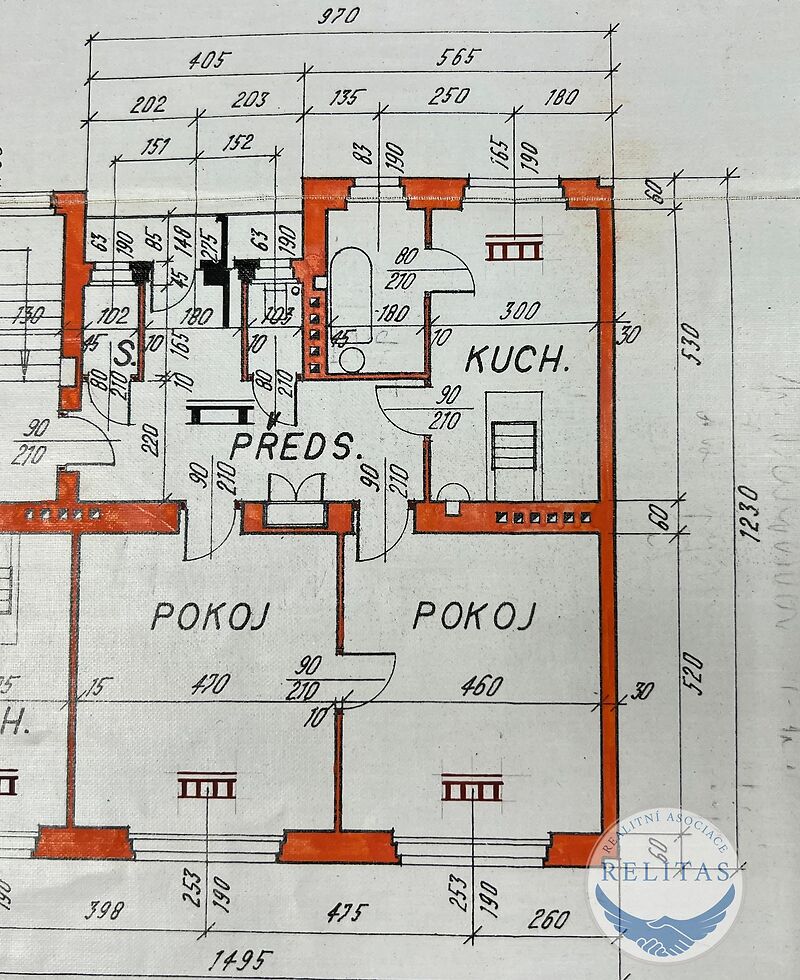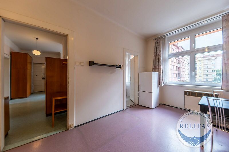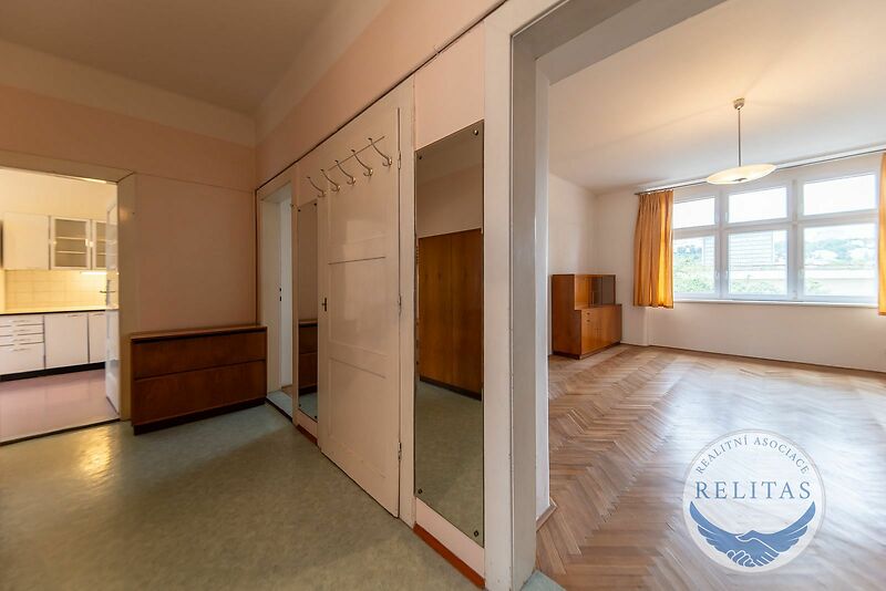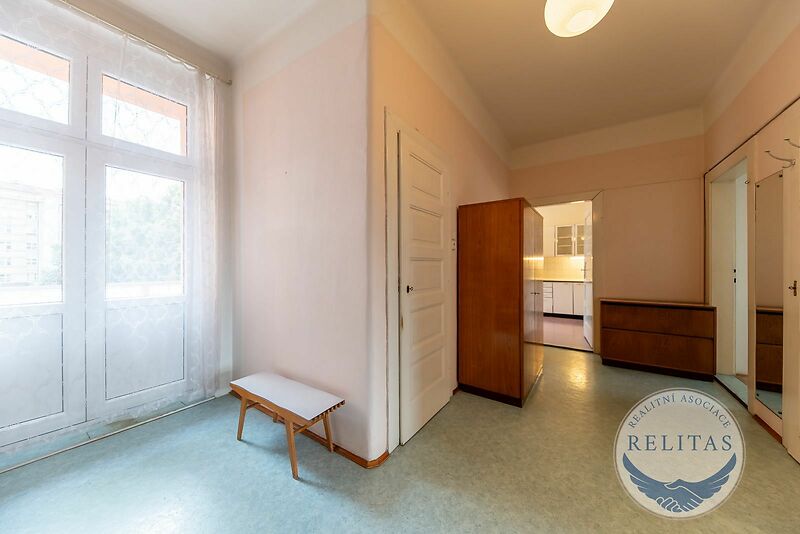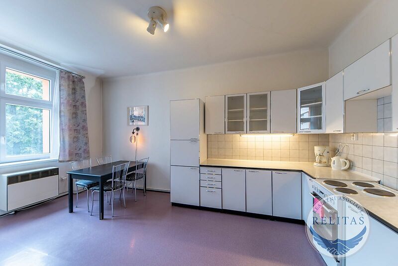 Exkluzivně zprostředkuji pronájem bytu 2+1, 91 m² v 2. podlaží cihlové budovy s výtahem v ulici U vody, Praha 7 - Holešovice. Stanice metra =C= Nádraží Holešovice se nachází 10 min chůze. Zastávka tramvaje Ortenovo náměstí 5 min chůze. Byt se sestává ze dvou prostorných neprůchozích pokojů, prostorné kuchyně s jídelním stolem, koupelny s vanou, komory, lodžie a samostatně umístěné toalety (vizte, prosím, půdorys). K bytu náleží i sklepní kóje. Okna pokojů jsou orientována na sever - do parku s výhledem na Vltavu, koupelna, kuchyně a lodžie na jih - do vnitrobloku. Byt je aktuálně bíle vymalován, foto ještě před malbou. Byt se pronajímá částečně zařízený. Vytápěno el. akumulační kamny a v kuchyni plynovým topidlem - vafkami. Ve vnitrobloku je možné využívat společných 5 parkovacích míst náležících celému domu.