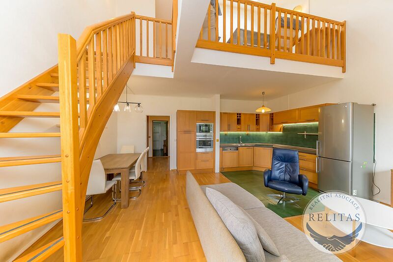 Exkluzivně zprostředkuji pronájem mezonetového bytu 4+kk, 104 m² v 1. patře cihlové zateplené novostavby z roku 2009 v Libušské ulici, Praha-Libuš - Písnice.