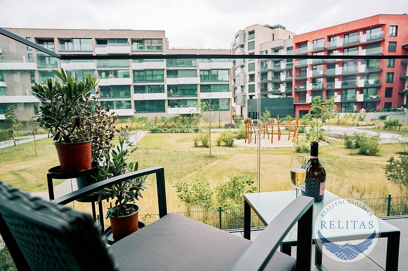 Exkluzivně zprostředkuji pronájem zcela nového, elegantně zařízeného bytu 1+kk, o vnitřní ploše 36,5 m² + 6 m² terasa v 2. patře novostavby z roku 2024 v Šrámkové ulici, Praha 3. Byt se sestává z předsíně, obývacího pokoje s kuchyňskou linkou s indukční varnou deskou a přístupem na terasu, koupelny se sprchovým koutem a toaletou. Okna jsou vybavena elektrickými vnějšími žaluziemi. V bytě je klimatizace s rekuperací, v celém bytě je podlahové topení. Byt je vybaven bezpečnostními protipožárními dveřmi a alarmem. V přízemí domu lze využívat společnou kočárkárnu/kolárnu. Byt je nově vybaven elegantním nábytkem. V kuchyni je myčka nádobí, horkovzdušná trouba, mikrovlnná trouba a indukční varná deska.