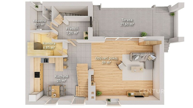 Hledáte cestu z města k velké okrasné zahradě, koupacímu jezeru s dřevěným molem a rodinnému domu s krytou terasou odkud se budete kochat výhledem na všechnu krásu kolem Vás. Vydejte se do obce Žabovřesky, kde aktuálně přesně takový rodinný dům nabízíme k prodeji. A pokud jste si někdy říkali, že když si koupíte rodinný dům, pak se již nikam nepodíváte. Tady Vám to vlastně vůbec vadit nebude, protože nikam ani jezdit nemusíte. Máte vše na své zahradě. Koupání v jezeře, opalování na vlastním mole, grilovačky se západem slunce na kryté terase, prostě soukromý ráj. Nabízíme k prodeji rodinný dům s garáží o zastavěné ploše 152 m2 a zahradou o celkové výměře 1.198 m2. Součástí zahrady je nejen již zmíněné koupací jezero, ale najdete zde i skleník a pergolu. • rodinný dům s garáží a zahradou • celková výměra pozemku 1.350 m2 • okrasná zahrada s koupacím jezerem a molem • 10 minut od Českých Budějovic Jak je z fotek patrné, dům je svým majitelem řádně opečovávaný a jako důkaz je zahrada samotná, kterou jsme fotili v listopadu a na zemi nebyl ani lístek. Jedná se o přízemní rodinný dům s obytným podkrovím a technickým suterénem. Dispozičně je dům řešen takto: do domu se vstupuje z kryté terasy do zádveří domu. Prostorné zádveří zajišťuje vstup do koupelny, suterénu a hlavní obytné místnosti, která je tvořena obývací pokojem (39 m2), kuchyní s jídelním koutem (25 m2) a praktickou komorou (6,85 m2). Obývák je prosvětlen velkou okenní sestavou a jeho součástí je krbová vložka. Kuchyně je vybavena moderní kuchyňskou linkou s vestavenými spotřebiči a jídelním stolem pro celou rodinu. Podkroví je přístupné po schodišti a nejdete zde koupelnu, ložnice (25 m2) s přímým vstupem na balkon a velký pokoj (22 m2), který lze rozdělit na dva menší dětské pokoje. Koupelna v podkroví je vybavena vanou, dvěma umyvadly a toaletou. V přízemní koupelně najdete sprchový kout, toaletu, umyvadlo a přípojku pro pračku. Kutily nadchne suterén domu, který je přístupný ze zádveří domu a po schodišti se dostáváte do dílny (20 m2) na kterou navazuje velká garáž (40 m2). Součástí suterénu je dále kotelna a místnost s přípravou na budoucí saunu. Dům je vytápěn kotlem se zásobníkem na uhlí a ohřev TUV je kombinovaný bojler 200 l se zdrojem kotel / elektřina. Na zahradě je studna, která složí jako zdroj vody pro jezero a celou zahradu. Obec Žabovřesky se nachází 10 minut jízdy autem od Českých Budějovic. Najdete zde mateřskou školku, obec žije sportem (fotbal, tenis) a konají se zde různé kulturní akce. Základní škola se nachází v nedaleké obci Dubné. Bezprostřední okolí obce Žabovřesky je obklopeno lesy a rybníky. Prohlídku doporučujeme a těšíme se na Vás.