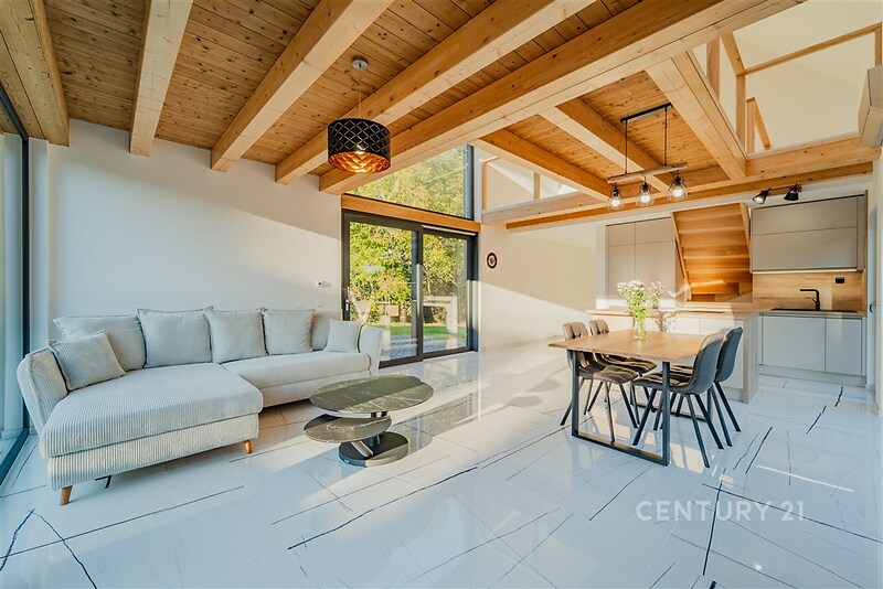 Hledáte dokonalý únik od ruchu města? Seznamte se s výjimečnou nemovitostí vzdálenou pouhých 15 minut jízdy autem od Opavy, která nabízí soukromí, klid a harmonii s okolní přírodou. Tento moderní dům – dřevostavba o dispozici 3+kk – je navržen pro náročnou klientelu, která ocení otevřené prostory, velkorysé prosklené plochy a dechberoucí výhledy do zeleně. Každý detail byl promyšlen tak, aby spojoval komfort, funkčnost a nadčasový design. Dům má obdélníkový půdorys o rozměrech 12 × 5,5 m a disponuje jedním nadzemním podlažím a obytným podkrovím se sedlovou střechou. Ze vstupní chodby se dostanete do prostorného obývacího pokoje s kuchyní, odkud se otevírá krásný výhled do okolní přírody. Z chodby je rovněž přístup do koupelny s WC a na schodiště vedoucí do podkroví. V horním patře se nachází obytná galerie, z níž se vstupuje do ložnice. Obytné místnosti jsou situovány tak, aby poskytly maximum denního světla a zeleně – obývací pokoj s kuchyní a galerie mají prosklené plochy orientované do zahrady, ložnice a koupelna s WC jsou orientovány na pozemek před domem. V interiéru jsou použity prémiové kvalitní materiály italská dlažba, obklady, designová kuchyně na míru se spotřebiči Gorenje s 5ti letou zárukou, klimatizace Siemens a video telefon s dálkovým ovládáním přes WiFi. Vytápění zajišťuje elektrické podlahové topení, v koupelně je instalováno otopné těleso žebříkového typu a ohřev vody zajišťuje elektrický zásobníkový ohřívač. Ve společném obytném prostoru jsou instalována krbová kamna, která slouží jako sekundární zdroj tepla a zároveň vytvářejí příjemnou atmosféru. Součástí nemovitosti je vlastní studna, kanalizace je řešena do podzemní splaškové jímky. Parkování je zajištěno venkovním stáním až pro pět aut s elektrickou bránou na dálkové ovládání. Pozemek se nenachází v záplavové oblasti ani na poddolovaném území. Dům je kompletně dokončený a připravený vám poskytnout příjemné zázemí. Pokud hledáte místo, který spojuje moderní komfort s dotekem přírody a poskytuje odpočinek mimo ruch města, pak je tato nabídka určena právě vám. Pro bližší informace mne neváhejte kontaktovat.