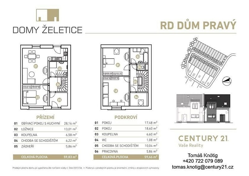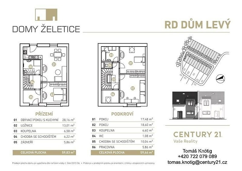 Hledáte domov, který spojuje klid venkova s technologickým standardem budoucnosti? Představuji vám novostavbu rodinného domu v malebných Želeticích u Znojma. Tento dům není jen „stavba“ – je to promyšlený prostor pro život, kde se potkává estetika s maximálním komfortem. Co dělá tento dům výjimečným? ► Zapomeňte na kompromisy. Tento dům je navržen tak, aby vás hýčkal: Akustická pohoda na prvním místě: Dělící stěna mezi domy nejen splňuje, ale dokonce převyšuje přísné normové požadavky. Užijte si naprosté soukromí a ticho bez ohledu na to, co se děje u sousedů. Energetická svoboda (PENB A): Kombinace tepelného čerpadla s teplovodním podlahovým vytápěním a plastových oken s izolačními trojskly zaručuje, nízké provozní náklady a maximální tepelný komfort. Navíc je dům připraven na instalaci fotovoltaiky. Interiér ve vaší režii: Dům vám předáme kompletně dokončený, ale finální tvář mu vdechnete vy. Navíc si můžete vybrat z kvalitního standardního vybavení dekory podlah, obkladů v koupelně, atd.... ► Technické parametry v kostce Dispozice: 4+kk (dvoupodlažní dům) Užitná plocha: 120 m² | Pozemek: 558 m² Konstrukce: Poctivá keramická cihla + kvalitní zateplení Parkování: Dvě vlastní venkovní stání přímo u domu ► Život v Želeticích? Vše na dosah ruky. Želetice nejsou jen tečkou na mapě, ale živou obcí s duší. Pro rodiny: Základní škola je doslova minutu chůze po chodníku a nová školka roste přímo v obci. Pro relax: Procházky v zámeckém parku, posezení ve vinném sklípku nebo letní osvěžení na místním koupališti s hospůdkou. Skvělá dostupnost: Do Znojma i Moravského Krumlova dojedete za 20 minut, v Brně jste za 45 minut. Obec je navíc strategickým autobusovým uzlem. ► Financování a cesta k novému domovu Chcete do nového, ale potřebujete nejdříve prodat stávající byt či dům? Žádný problém. Celý proces prodeje i následného financování s vámi vyřeším individuálně a bez stresu. Existuje řada variant, jak se k vašemu vysněnému bydlení dopracovat – společně vybereme tu nejlepší. ►►Přijeďte se přesvědčit o kvalitě provedení na vlastní oči. Těším se na vás na prohlídce!