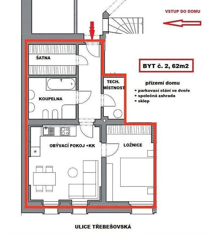Hledáte domov s neopakovatelnou atmosférou a klidem venkova, ale s výbornou dostupností do centra Prahy? Nabízíme k pronájmu velmi příjemný byt 2+kk o výměře 60 m2 v citlivě zrekonstruované zemědělské usedlosti na ulici Třebešovská. Tento uzavřený areál se šesti byty prošel v minulosti kompletní rekonstrukcí a nabízí bezpečné a vkusné bydlení. Co vás v bytě čeká? • Světlý obývací pokoj s kuchyní: Dominantou prostoru je moderní bílá kuchyňská linka vybavená spotřebiči (myčka, varná deska, el. trouba, digestoř) a volně stojící nerezová lednice. Celý prostor podtrhují masivní dubové podlahy. • Komfortní ložnice: Součástí vybavení je designová knihovna a komoda. • Prostorná koupelna: Koupelna disponuje prostornou vanou, sprchovým koutem, dvěma umyvadly a bidetem. • Praktické zázemí: Vlastní opravdu praktická šatna a technická místnost s plynovým kotlem pro nezávislé vytápění. • Bezpečí a soukromí: Celý objekt je uzavřený, byt má vlastní zabezpečovací zařízení, komfort prostoru umocňují dřevěná okna • Bonusy: K bytu náleží vyhrazené parkovací stání v uzavřeném dvoře a možnost využívat společnou zahradu. Skvělá lokalita Horních Počernic: • Doprava: Autobusem jste za 6 minut na metru B Černý Most, vlakem pak za 16 minut na Masarykově nádraží. • Volný čas: V okolí se nachází Chvalský zámek, místní divadlo, cyklotrasy a tenisové kurty. • Občanská vybavenost: Pošta, lékárna, obchody a restaurace v docházkové vzdálenosti. ________________________________________ Měsíční náklady a podmínky: • Nájemné: 20 500 Kč • Parkovací stání: 1 500 Kč (nedílná součást nájmu) • Služby (údržba objektu, úklid, spol. elektřina): 1 600 Kč • Zálohy na energie a vodné: cca 3 300 Kč (přepis elektřiny a plynu na nájemce) • Vratná kauce: 30 000 Kč Ozvěte se mi a přijďte se o tom přesvědčit sami!