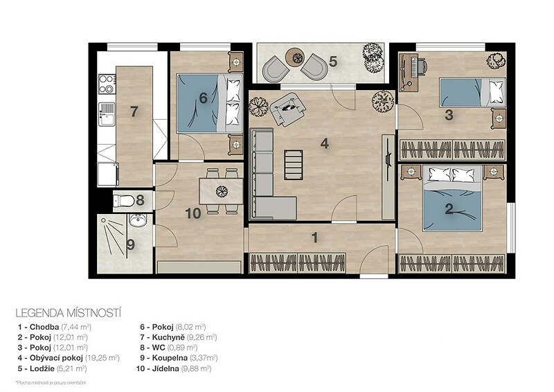 Hledáte ideální rodinné bydlení, kde se snoubí prostor, moderní design a klidná lokalita? Nabízíme Vám k prodeji výjimečný, kompletně zrekonstruovaný byt na ulici Elplova, Brno – Líšeň. Byt se nachází v 1. NP a díky své promyšlené dispozici nabízí komfortní zázemí i pro větší rodinu. Hlavní přednosti bytu: Velkorysá užitná plocha bytu 84 m² + zasklená lodžie 5,2 m² pro Váš odpočinek. Byt prošel postupnou rekonstrukcí: nová kuchyňská linka včetně vestavných elektrospotřebičů, kde je prostor také na pračku a sušičku, koupelna se sprchovým koutem s odtokovým žlabem, samostatná toaleta, zasklená lodžie, nová vinylová podlaha v místnostech. V bytě je také pamatováno na úložné prostory: Velká vestavěná skříň se nachází podél celé chodby a úložný prostor je také ve sklepní kóji 4 m². Využívat můžete také společnou kolárnu/kočárkárnu, kde je rovněž dostatek úložného místa. Dispozice a interiér: Byt je řešen velmi prakticky, přičemž srdcem domova je centrální chodba, ze které se dostanete do všech částí bytu. ►Obývací pokoj (19,25 m²) je světlý prostor s přímým vstupem na zasklenou lodžii, která slouží jako oáza klidu s výhledem. ►Kuchyně (9,28 m²) disponuje novou moderní linkou ve tvaru „U“ a je vybavená vestavnými spotřebiči (indukční varná deska, vestavná lednice kombinovaná s mrazákem, myčka, filtrová digestoř). ►Jídelna (9,88 m²) unikátní propojovací prvek mezi kuchyní a obývacím pokojem, ideální pro společné rodinné večeře. ►Ložnice (12,01 m²) ložnice s manželskou postelí a šatní skříní. ►Dětský pokoj / Pracovna (12,01 m²). Prostorný pokoj s variabilním využitím. ►Pracovna/dětský pokoj (8,02 m²) ideální jako hostinský pokoj nebo další dětský pokoj. ►Zrekonstruovaná koupelna se sprchovým koutem a samostatné WC. Podívejte se na přiložené fotografie, půdorys a video prohlídku, které vám byt přiblíží ještě lépe. Náklady na bydlení při 4 členné rodině jsou 6 000,Kč včetně fondu oprav. PENB v kategorii C (úsporná budova). Bytový dům je zateplen, nové dlažby, výtah a nová střecha. Vytápění je ústřední – Teplárny Brno, v pokojích jsou radiátory. Brněnská Líšeň je jednou z nejoblíbenějších lokalit pro bydlení. Ulice Elplova nabízí vše na dosah školy, školky, obchody i restaurace v docházkové vzdálenosti. Skvělá dostupnost. Rychlé spojení do centra Brna i na dálniční tepny. Příroda za rohem: V blízkosti najdete dostatek zeleně pro procházky a sportovní vyžití. Tento světlý a vzdušný byt je připraven ke koupi a to bez nutnosti dalších investic. Zaujala vás tato nabídka? Neváhejte mě kontaktovat a domluvte si prohlídku svého nového domova ještě dnes!