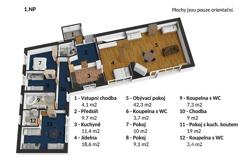 Hledáte investiční příležitost v turisticky atraktivní lokalitě? Nabízíme k prodeji prostorný rodinný dům v historickém městě Loket s celkovou užitnou plochou 271 m² a pozemkem o velikosti 1 741 m². Objekt je plně připraven k provozu a nabízí komfortní ubytování až pro 13 hostů s možností navýšení kapacity. V hlavním patře o rozloze 148 m² se nachází velký společenský prostor s jídelnou o ploše 61 m², ideální pro snídaně či večerní posezení hostů. Na něj navazuje plně vybavená kuchyně určená pro přípravu jídel. Dále jsou dva samostatné pokoje s kuchyňským koutem a koupelnou. Na ně navazuje jeden pokoj s vlastní koupelnou, a přímým vstupem na terasu. Ve spodním patře se nachází samostatná apartmánová jednotka o velikosti 27 m² s kuchyňským koutem a koupelnou, vhodná pro dlouhodobější pobyty nebo ubytování správce. Odtud je přístup do prostorného sklepa o ploše 66 m², který nabízí možnost vybudovat wellness, saunu či fitness. Podkroví o rozloze 31 m² tvoří tři útulné místnosti, které lze využít jako další pokoje, dětský koutek nebo sklad. Hosté ocení soukromou terasu obklopenou zelení, vyhřívaný bazén a prostornou pergolu s velkou televizí, ideální pro letní večery a grilování. Dům je zateplený a většina oken je plastových. Je vhodný k ubytování větších skupin ale díky členění je možné ubytovávat i rodiny či jednotlivce. Loket je vyhledávanou turistickou destinací s dominantním hradem, amfiteátrem plným kulturních akcí a bohatou nabídkou sportovního vyžití. V blízkosti vede cyklostezka Karlovy Vary –Cheb a okolní příroda láká k procházkám, cyklistice i houbaření. Tento penzion je ideální volbou pro investory, kteří hledají funkční a atraktivní ubytovací zařízení s okamžitým provozním potenciálem. Nabízíme možnost vypracování nezávislého porovnání financování a přípravu řešení šitého na míru vašim potřebám a možnostem. V případě většího zájmu proběhne jednání o ceně. Více informací a prohlídku Vám zajistí realitní makléř Viktor Tůša.