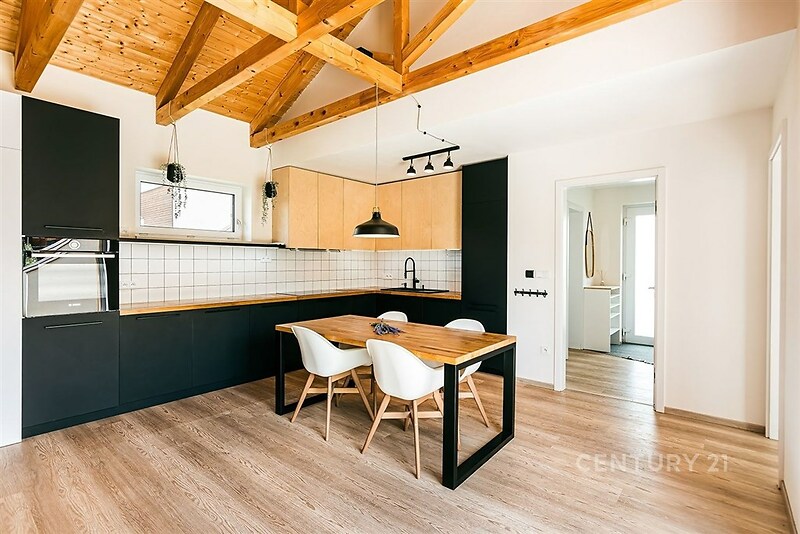 Hledáte místo, kam uniknout z ruchu města, a přitom se nevzdat svého pohodlí? Vítejte v Brodě nad Dyjí. V obci, kde vítr voní vínem, slunce zapadá nad hladinou Novomlýnských nádrží a večery patří posezení na terase… Právě zde nabízíme ke koupi moderní dům s dispozicí 3+kk, zkolaudovaný v roce 2021. A rozhodně nejde o žádný tuctový domek – tohle je místo, kde se snoubí funkčnost, promyšlený design a atmosféra domova. Interiér byl navržen s důrazem na detail. Většina nábytku je vyrobena na míru, vše do sebe perfektně zapadá. Kuchyňská linka je vybavena vestavěnými spotřebiči – myčkou, lednicí s mrazákem, varnou deskou, troubou – stačí jen přivézt zásoby a můžete vařit. K dispozici jsou dvě koupelny, každá se svou toaletou – ideální řešení pro rodinu i návštěvy. Podlahové topení se postará o příjemné teplo v zimě, klimatizace o komfort v létě, venkovní žaluzie oceníte po celý rok. Energetický průkaz B vám zajistí nízké náklady na provoz. Praktická venkovní komora pojme kola, nářadí nebo třeba paddleboardy. Všechny obytné místnosti mají francouzská okno pro vstup na terasu, která láká k snídani pod širým nebem, odpolednímu odpočinku či večernímu grilování. Parkování? Přímo před domem na vlastním pozemku jsou dvě místa jen pro vás. A pokud byste zatoužili po větším výletu, stačí nasednout na kolo nebo do auta. Kousek od domu se rozprostírá vodní nádrž Nové Mlýny, na dohled jsou Pálavské vrchy, vinařské stezky, Mikulov, Lednickovaltický areál, Aqualand Moravia nebo klidné rybářské zátoky. Brod nad Dyjí je menší, ale živá obec s obchodem, mateřskou školou, knihovnou i restaurací. Vše ostatní najdete pár minut jízdy v Pasohlávkách nebo Mikulově. Ať už hledáte místo pro život, rekreační útočiště nebo investiční příležitost s potenciálem, tento dům vám nabídne víc než jen střechu nad hlavou. Zavolejte si o prohlídku. Možná právě tady začne vaše nová životní kapitola.