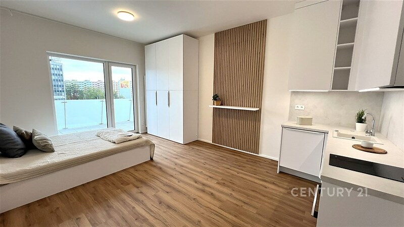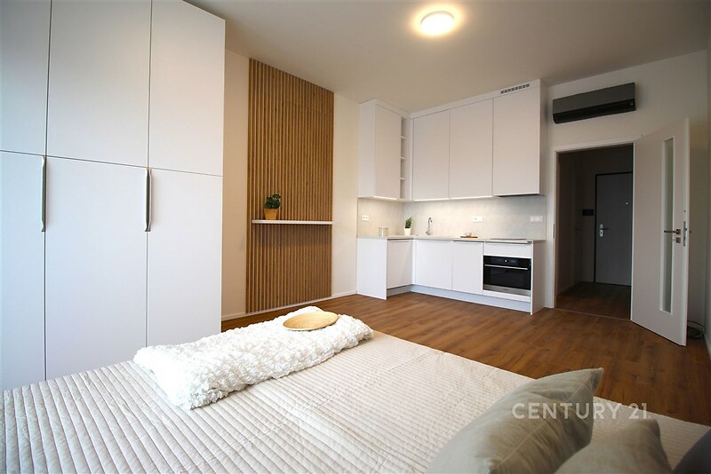 Hledáte moderní a klidné bydlení kousek od centra Brna? Tento nový, plně zařízený byt (ateliér) 1+kk s terasou v projektu Allrisk Meridiem nabízí styl, pohodlí i skvělou dostupnost – ideální pro jednotlivce nebo pár. Ateliér o celkové výměře 41,6 m² se nachází ve 4. NP (3. patře) domu s bezbariérovým vstupem a výtahem. Buďte prvním nájemcem tohoto nového, světlého a elegantního ateliéru. Ateliér je vybaven klimatizací a kuchyňskou linkou se spotřebiči Whirlpool –trouba, digestoř, lednice, myčka, indukční varná deska Philco. Součástí je manželská postel, šatní skříně, jídelní stůl se židlemi. Možnost dovybavit televizí. V koupelně je sprchový kout a přípojka na pračku, umyvadlová skříňka, toaleta je oddělená. Orientace ateliéru směřuje do klidného vnitrobloku a okna jsou osazena elektricky ovládanými venkovními žaluziemi. Optický internet rychlost 300/300 Mbps. Projekt Allrisk Meridiem se nachází v žádané lokalitě Brno–Trnitá, s výbornou dostupností do centra – cca 4 minuty od hlavního nádraží. V bezprostřední blízkosti je zastávka MHD, supermarket, cyklostezka podél řeky Svitavy a zeleň pro volnočasové aktivity. Snadné napojení na městský okruh, dálnici D1 i D2. Vkusné a moderní bydlení v atraktivní a žádané lokalitě. K nastěhování ihned, prohlídky jsou možné po předchozí domluvě kdykoli.
