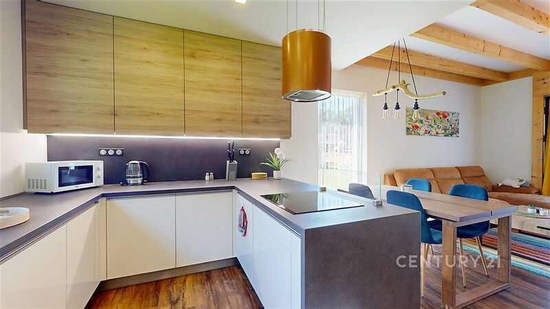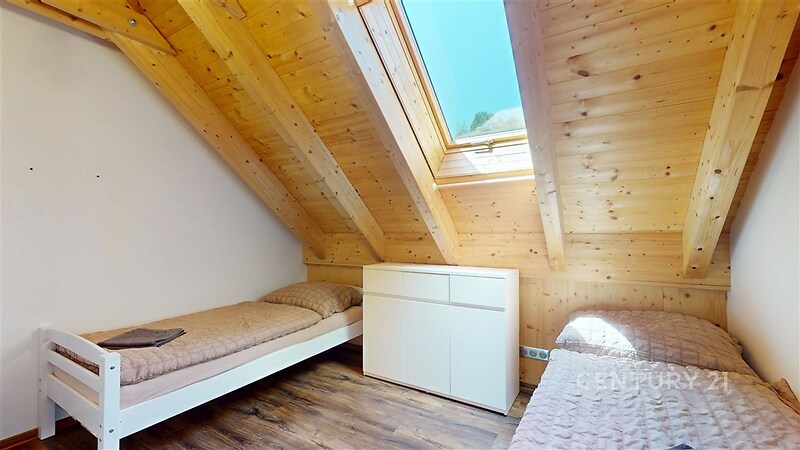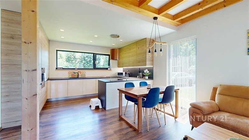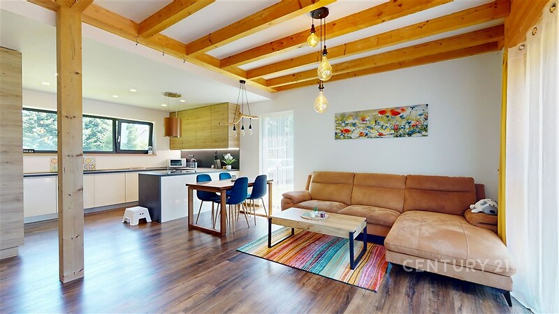 Hledáte moderní rodinný dům v srdci Beskyd, který nabízí klid, prostor a soukromí? Pak vás jistě zaujme tato prostorná vila 5+kk o užitné ploše 151 m², která se nachází v Morávce, v nádherné přírodě CHKO Beskydy. Dům stojí na rozlehlém pozemku o velikosti 1 960 m², mimo hlavní cestu a bez přímých sousedů. Je ideálním místem pro rodinu, která hledá kombinaci moderního bydlení a klidného života v přírodě. V přízemí vás přivítá velkorysý obývací pokoj propojený s kuchyní. Do místnosti se pohodlně vejde velký gauč, jídelní stůl i televize. Dominantou prostoru je krb, který dodává příjemnou atmosféru i teplo domova. Díky prosklenému průchodu na dlážděnou terasu je obývák krásně prosvětlený. Kuchyňská část je vybavena moderní linkou se zabudovanými spotřebiči – myčka a lednice Beko, digestoř Klarstein, indukční deska Electrolux a trouba AEG. Na konci chodby je hlavní ložnice, která nabízí naprosté soukromí a má vlastní vstup na terasu. Hned vedle je krásná koupelna s walkin sprchovým koutem a toaletou. Celá je dekorována bambusovým dřevem, které prostoru dodává přírodní charakter. Dále se zde nachází vstupní předsíň s dostatkem místa pro boty i kabáty, praktická úložná místnost pod schody a technická místnost. Dřevěné schodiště vás zavede do patra, kde jsou čtyři pokoje, koupelna a úklidová místnost. Největší ložnice má navazující místnost, kterou lze využít jako obrovskou šatnu, pracovnu nebo další pokoj. Dvě další místnosti poslouží jako dětské pokoje plné hraček a radosti. Koupelna je připravena k dokončení podle vlastních představ. Všechny pokoje mají střešní okna, díky kterým můžete sledovat hvězdné nebe přímo z vaší postele. Dům je dřevostavbou systému DEKPANEL, tvořenou masivními dřevěnými panely. Nosný systém tvoří trámy z konstrukčního dřeva, stropy jsou trámové a střecha má klasický sedlový tvar s pálenou krytinou. Vytápění je zajištěno elektrickým podlahovým topením, ohřev vody elektrickým bojlerem. Dům je napojen na veřejný vodovod. Dům je velmi dobře zateplený a má energetický štítek B. K vile patří dlážděná terasa s příjemným posezením a velký pozemek, na kterém vklidu zaparkuje celá vaše rodina. Navíc se můžete vyhřát ve samostatně stojící sauně. Dům se prodává s částečným vybavením. V okolí najdete to nejkrásnější co vám můžou Beskydy nabídnout. Řeka Morávka i cyklostezka vedou hned za domem, milovníci hor ocení snadný přístup na Lysou horu, Prašivou nebo třeba Ropici. V obci je obchod, škola i školka. Dostupnost na dálnici je skvělá, do FrýdkuMístku dojedete za 20 minut a do Ostravy za 30 minut. Tento krásný dům je ideálním místem pro rodinu, která hledá moderní vilu s dostatkem prostoru, klidu a čerstvého horského vzduchu. Zaujal vás tento výjimečný dům? Ozvěte se mi a domluvíme si prohlídku, rád vám ho osobně ukážu.