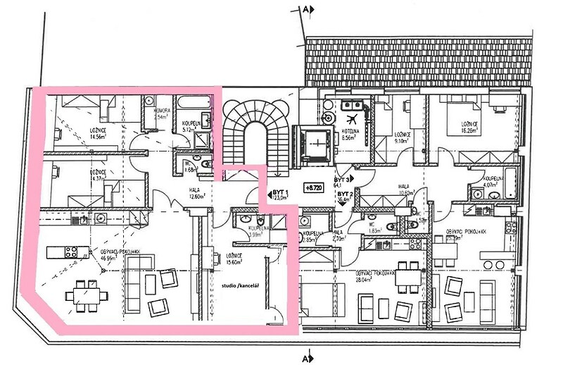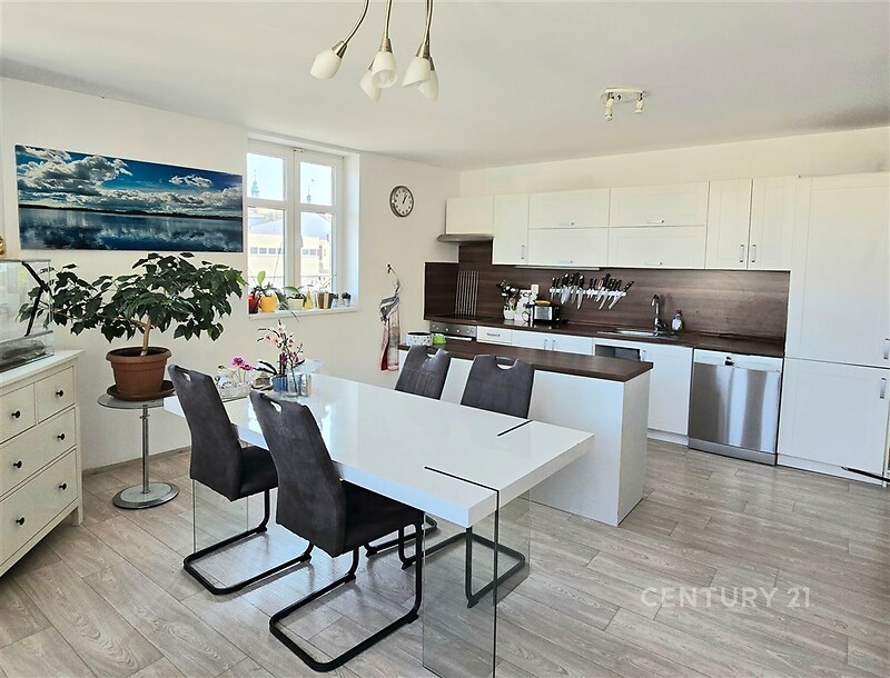 Hledáte opravdu velký, slunečný a moderní byt v centru Benešova s vlastním odděleným studiem pro práci, hosty nebo dospívající dítě? Nabízíme k pronájmu velkorysý byt o celkové ploše 124 m², dispozičně řešený jako 3+kk se samostatným studiem 1+kk. Byt se nachází ve 3. patře domu s výtahem na adrese Pražská 380, Benešov u Prahy. Byt je světlý, moderní a velmi prostorný, ideální pro rodinu nebo pro ty, kteří ocení dostatek místa a praktické dispoziční řešení. Díky oddělené části může byt pohodlně fungovat jako kombinace bydlení a domácí kanceláře, prostor pro hosty nebo i dvougenerační bydlení. Byt se nachází přímo v centru Benešova, v docházkové vzdálenosti od obchodů, restaurací, škol, školek i autobusového a vlakového nádraží. Hlavní část bytu má dispozici 3+kk o velikosti cca 100 m²: • obývací pokoj s kuchyní 46,96 m² • ložnice 14,56 m² • ložnice 14,37 m² • koupelna 5,12 m² • samostatné WC 1,68 m² • hala 12,6 m² • komora 2,54 m² Velkým benefitem je samostatná část bytu (1+kk cca 24 m²) s vlastním zázemím. Může sloužit jako pracovna, ateliér, pokoj pro studenta, pokoj pro hosty nebo soukromé zázemí pro člena rodiny. Tato část nabízí: • pokoj 15,60 m² • vlastní koupelnu s WC 3,98 m² • malou kuchyňku • průchozí pokoj (šatna/kancelář) 4,32 m² Byt bude bez vybavení, zůstává pouze kuchyň (s vestavnými spotřebiči a s pracovním ostrůvkem) a dále vestavěné skříně v ložnici, dětském pokoji a chodbě. Prohlídky bytu budou možné od 11. dubna, kdy bude byt prázdný a nově vymalovaný. Další informace: • nájemné: 25 000 Kč / měsíc • zálohy na služby (TUV a centrální vytápění plyn, výtah, osvětlení společných prostor, úklid domu, voda): 5 000 Kč / měsíc • elektřina se převádí na nájemce • možnost pronájmu vlastního parkovacího stání za poplatek (1 500 /měsíc) • byt je volný od poloviny dubna 2026 • kauce: 40 000 Kč • odměna RK: 25 000 Kč + DPH