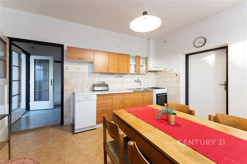Hledáte samostatně stojící dům, který si upravíte přesně podle sebe, a zároveň chcete klidnou adresu s výbornou dostupností? V Moravských Budějovicích, v oblíbené a tiché ulici Mexická, nabízíme rodinný dům o dispozici 5+1, který je kompletně podsklepený a s obytným podkrovím. Celková užitná plocha domu včetně sklepních prostor činí cca 260 m2, zastavěná plocha domu cca 116m2. Na pozemku o výměře 600 m2 je samostatně stojící dvojgaráž s vnitřním prostorem cca 50 m2 a před ní vydlážděné stání pro další dvě auta. O vytápění rodinného domu se stará plynový kotel, okna již byla vyměněna za moderní plastová s dvojsklem zbytek domu čeká spíše na revitalizaci. PENB se aktuálně zadává na zpracování, proto uvádíme hodnotu G. Pro koho je dům vhodný? Pro ty, kteří ocení potenciál rekonstrukce a velkorysé zázemí: celé podsklepení nabízí prostory pro dílnu, sklad i hobby, garáž pojme pohodlně dvě auta a ještě zůstane místo na vybavení. Zahrada s ovocnými stromy a vlastní studnou plynule navazuje na dům a poskytuje příjemné soukromí pro odpočinek. Nemovitost je napojena na obecní vodovod, plynovod, elektřinu a obecní kanalizaci. Lokalita ul. Mexická potěší klidem a současně příjemnou dostupností do centra Moravských Budějovic. V okolí najdete školy, školky, obchody i služby. Město nabízí široké možnosti volnočasového vyžití – procházky v přírodě, cyklotrasy, sportovní kluby i kulturní akce v historickém centru. Bonus: K nabízenému pozemku 600 m2 lze volitelně přikoupit sousední parcelu o výměře cca 500 m2 – může sloužit jako rozšíření zahrady, investiční rezerva nebo prostor pro výstavbu dalšího rodinného domu např. pro rodinu (informace o regulativech a ceně na dotaz). Hlavní přednosti: • samostatně stojící rodinný dům 5+1 s obytným podkrovím • celková užitná plocha cca 260 m2, celý dům podsklepený • dvojgaráž cca 50 m2 + vydlážděné venkovní stání na pozemku pro další 2 vozy • zahrada s ovocnými stromy, vlastní studna • tichá ulice Mexická, Moravské Budějovice – skvělá dostupnost a vybavenost • dům vhodný k rekonstrukci – potenciál přizpůsobit si dispozice i standard • možnost přikoupení sousedního pozemku cca 500 m2 (potenciál další výstavby) Kontaktujte nás telefonicky či e‑mailem a domluvte si svůj termín prohlídky.