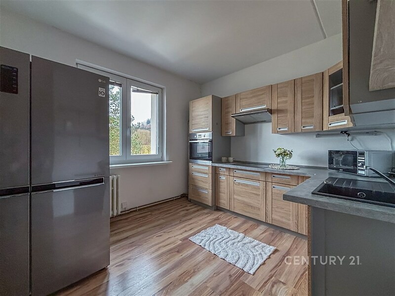 K dlouhodobému pronájmu bych Vám ráda nabídla tento útulný byt v obci Číhaň. Byt se nachází v klidném prostředí obklopeném nádhernou přírodou, ideálním pro ty, kteří hledají rovnováhu mezi odpočinkem a aktivním životním stylem. Obec nabízí víceúčelové hřiště, koupaliště, turistické i cyklistické stezky a pravidelně se zde konají různé společenské a kulturní akce. Výhodou je také dobrá dostupnost do Klatov, které jsou vzdálené přibližně 12 km, a velmi dobré autobusové spojení směrem na Klatovy i Sušici. Bytová jednotka o užitné ploše 65 m² nabízí příjemné a praktické dispoziční řešení. Po vstupu do bytu se ocitnete ve vstupní chodbě, která je vybavena velkou úložnou skříní a poskytuje dostatek prostoru pro odkládání věcí. Z chodby se dále vstupuje do samostatného pokoje, který může sloužit například jako ložnice. Součástí bytu je také prostorná kuchyň s kuchyňským koutem, který je vybaven vestavěnou troubou, digestoří, velkou americkou lednicí a volně stojící mikrovlnnou troubou. V kuchyni je zároveň připraven prostor pro pračku. Byt dále disponuje krásnou koupelnou společnou s toaletou, která působí moderně a velmi vkusně. K bytu náleží prostorná garáž, která zajišťuje pohodlné a bezpečné parkování a dále velký sklep s dostatkem úložného prostoru. Součástí bytu je také balkon s nádherným výhledem do okolní krajiny, který je ideálním místem k odpočinku a relaxaci. Měsíční nájemné 12 900 Kč Vratná kauce 25 000 Kč Provize RK 12 900 Kč + DPH (15 609 Kč vč. DPH) Byt je připraven k okamžitému nastěhování. Elektřina bude přepsána na nájemce. Voda se neplatí je ze studny. Stočné v ceně nájmu. Pokud Vás tato nabídka zaujala, neváhejte se na mě obrátit, ráda se s Vámi setkám na prohlídce.