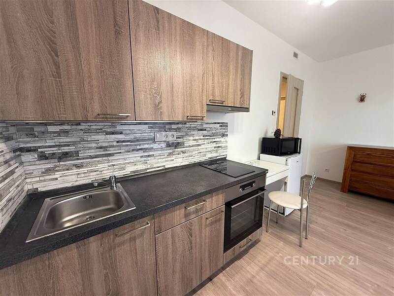 K dlouhodobému pronájmu nabízíme příjemný byt 1+kk s balkonem v moderním rezidenčním areálu Park Zličín, jen pár minut chůze od metra B Zličín. Byt má 32 m², balkon 6 m² a samostatnou komoru 3 m². Obytná místnost má cca 22 m², takže působí prostorně a pohodlně. Nachází se v 1. patře novostavby s výtahem. Byt je kompletně zařízený: kuchyňská linka se spotřebiči, šatní skříň, komoda, postel s matrací, křeslo a pračka se sušičkou. Na podlahách je kvalitní vinyl, v koupelně dlažba. V bytě je rekuperace, bezpečnostní dveře a předokenní rolety na elektrické ovládání. Areál je upravený, s dětským hřištěm a venkovními prvky na cvičení. Vstupy jsou na čip. Parkování je možné na ulici přímo u domu. Skvělá lokalita: metro, autobusy, OC Zličín, IKEA, Globus, kino, fitness, rychlé spojení na letiště a spousta cyklotras i přírody v okolí. Nájem: 17 000 Kč + poplatky 4 500 Kč + elektřina na nájemce + internet. Kauce: 30 000 Kč. + Provize RK. Byt je vhodný pro 1–2 osoby, nekuřácký, bez domácích mazlíčků. K nastěhování dle dohody.