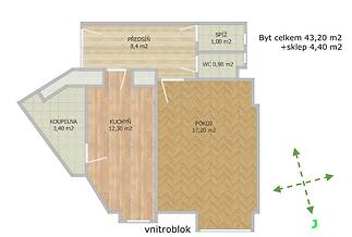K prodeji nabízím byt 1+1 (43,2 m + sklepní koje 4,4 m), který se nachází ve 2. nadzemním podlaží velmi dobře udržovaného cihlového domu v klidné ulici V. P. Čkalova, Praha Bubeneč. Obě místnosti jsou orientovány na jih do zeleného vnitrobloku se stromy. Světlo a minimum ruchu z ulice. Byt je ve stavu před kompletní rekonstrukcí, bude třeba výměna elektroinstalace i rozvodů vody. Vytápění zajišťuje zánovní plynový kotel. Po provedení následujících úprav může vzniknout chytré městské bydlení: - přesun kuchyně do většího pokoje - vytvoření patra na spaní v menším pokoji - spojení koupelny s WC - oddělený pracovní kout a úložné prostory v předsíni. Dům je ve velmi dobrém stavu - je vidět, že o něj vlastníci dlouhodobě pečují. Součástí vlastnictví této jednotky je také spoluvlastnický podíl na nebytových prostorech (restaurace, obchod, dvě kanceláře), z jejichž pronájmu plyne k této jednotce příjem cca 33 000 Kč ročně. Provoz restaurace není nijak stavebně propojen s bytovou částí domu a její fungování tak nijak nenarušuje jeho provoz. Lokalita téměř na půl cesty mezi Hradčanskou a Dejvickou je ideální. Tak akorát pěšky kamkoliv. Podrobnější informace, včetně plánku s výměrami a podkladů k hospodaření domu, najdete na našem webu v sekci projekty - ckalova. Energetcký štítek není od SVJ k dispozici, proto uvádím energetickou třídu G (bude nahrazeno vyúčtováním za energie za poslední tři roky). Pokud byste chtěli tento byt osobně vidět, budu rád, když mě kontaktujete (ideálně e-mailem), Přičemž nejbližší termín prohlídek mohu nabídnout ve sředu 4. 3. od 14:00 dále. Děkuji za pochopení.