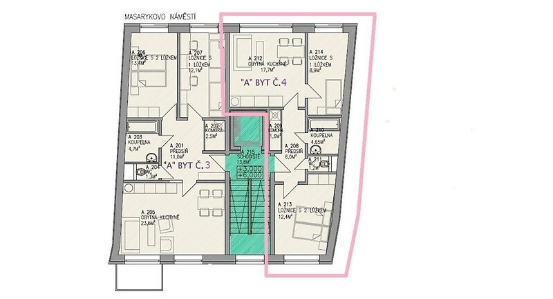 K prodeji nabízíme novostavbu bytu 3 KK, 66 m2, s balkonem, na adrese: Masarykovo nám. 47, Bystřice nad Pernštejnem. Jedná se o byt č. 4 ve 3 NP 2 patře s výtahem. Orientace bytu: Výhled na náměstí ( SV ) je z obývacího pokoje a malé ložnice, do vnitrobloku je orientována větší ložnice ( JZ ). K bytu je možno dokoupit parkovací místo ve vnitrobloku. Lokalita zajišťuje majitelům dokonalé soukromí přímo v centru města. Architektura s pokorou doplňuje historickou zástavbu a ctí ducha místa. Projekt je v současnosti realizován, dokončení projektu předpokládá rok 2027. Proto jsou ceny jsou zaváděcí a také financování bude z tohoto důvodu řešeno postupně. V první fázi rezervační záloha 10 % z celkové ceny bytu, po prohlášení vlastníka (rozdělení již hotové budovy na jednotlivé byty) další záloha do výše 50% celkové ceny, po kolaudaci nemovitosti se doplatí zbývající část. Tento způsob financování je velmi oblíbený, protože nabzí zájemci variabilitu a umožňuje si připravit odpovídající Cash flow s předstihem v klidu a bez rizika. Projekt je navržen tak, aby byl cenově dostupný, aniž bychom slevili z kvality provedení. Nabízíme moderní standardy bydlení, energetickou úspornost a promyšlené dispozice. Bydlet v developerském projeku: Rezidenci N°47 (pod tímto názvem najdete i internetové stránky) znamená mít obchody, služby, školy i kulturu na dosah ruky a zároveň se vracet do domu, který reprezentuje klid a pohodu. Firma Suniversal stavby, která tento projekt zaštiťuje, je mimo jiné, také zhotovitelem úžasného volnočasového projektu v Opatově (kousek za Třebíčí) apartmanyopatov. Vychází se i zde z dlouholetých zkušeností a vysokých standardů, kvality a to vše za přiznivé ceny, tak aby bydlení bylo dostupné každému. Více informací u makléře