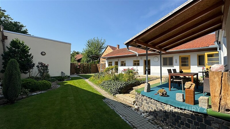 K prodeji nabízíme prostorný rodinný dům s dispozicí 6+1, ve velmi dobrém stavu, s možností rozdělení na dvě samostatné bytové jednotky. Ve dvorním traktu se dále nachází prostory pro samostatný výminek, nebo podnikání. Před ekologickou zahradou se nachází prostory využívané jako dílna a sklad. Dále se mohou využít i k pěstování drobného domácího zvířectva. V současnosti je dům ve stavu nevyžadujícím žádnou rekonstrukci k okamžitému užívání a bydlení. Zastavěná plocha domu včetně dvorního křídla 195 m2, zast. plocha hlavní stavby cca 140 m2, užitná plocha cca 190 m2. Okrasný dvůr 240 m2, předzahrádka 115 m2, zahrada za domem 514 m2, louka 3062 m2. Dispozice: v přízemí se nachází obývací pokoj 22.3 m2, ložnice 18 m2, centrem dění je kuchyně, s novou kuch. linkou (2025) a krbovými kamny Jotul, 18.3 m2. Dále se zde nachází pracovna 6.4 m2, spíž 3,8 m2, koupelna 6,3 m2, WC a prosklená veranda s posezením a výhledem do okrasného dvora 18.1 m2. V podkroví najdeme halu 7,8 m2, pokoj do ulice 15,4 m2 a pokoj do zahrady 14 m2. Zbylé půdní prostory jsou využitelné k rozšíření obytné plochy. Na okrasném dvoře se nachází krytá pergola, velmi využívaná od jara do podzimu k relaxaci a posezení. Měsíční provozní náklady činí: cca 5.500, Kč. Elektřina, plyn a voda. Dům je ze 2/3 podsklepený. Sklepy jsou větrané s plastovými okny do ulice. Vedle domu vpravo se nachází kryté uzamykatelné garážové stání se průchodem do okrasného dvora. Dům má vynikající mikroklima, díky přírodním materiálům a trojitým plastový RI oknům. Je velmi dobrém stavu, a nevyžaduje žádnou rekonstrukci. Je tudíž ihned obyvatelný. Součástí prodeje je kompletní zařízení, pračky a sušičky Elektrolux (cca 3 roky staré),nové koberců, závěsy, žaluzie ... vše dle domluvy Topení je plynové, řešené – kondenzačním plyn. kotlem Baxi (3 roky) s ohřevem TV, umístěným ve sklepě a DO v kuchyni. Nová topná tělesa Korado s termostatickými hlavicemi Heimeier. Další možností vytápění je krbovými kamny Jotul, které jsou umístěny v centrální obytné kuchyni a vytopí bezproblémově další přilehlé obytné místnosti. Kuchyňská linka je nová 2025 z letošního roku. Kuchyně sousedí s prostornou spižírnou. K dispozici je kompletní projektová dokumentace stávajícího stavu a případných budoucích stavebních úprav. Dispoziční stavební návrhy pro případnou samostatnou byt. jednotku v 2. NP a výminek ve dvorní části pro bezbariérový přístup jsou také k dispozici, nebo využití pro provozovnu a jiné podnikatelské činnosti. Měsíční provozní náklady: cca 5.500, Kč. Elektřina, plyn a voda. Dům je napojen na veškeré IS, včetně kanalizace do ČOV. Dům je napojen na vlastní studnu, s dostatečným množstvím vody. Dešťová voda ze střech je svedena do nádrží pro zavlažování okrasné, ekologické zahrady. Dvorní trakt poskytuje naprosté soukromí. Zdivo s plných pálených cihel . vzadu keramické stropy… Prostorná zahrada umožní vybudování jak bazénu, tak i vířivky, k dispozici je veškeré nářadí pro údržbu zahrady a domu. Dostatek prostoru k chovu domácích zvířat. Součástí podeje je i pole za zahradou, (vytvořena udržovaná louka) k pronajmutí. Do zahrady a na pole je možný příjezd po zpevněné cestě. Zastávku autobusu se nachází 350 m od domu s výborným spojením na Brno, Hustopeče a Hodonín. Škola s krytým bazénem 1 – 9 tříd, a se sportovní halou ve výstavbě, venkovní sportovním areálem, víceleté gymnázium, Stř. ekonomická škola, agroturistika, MŠ, ZUŠ, zdravotní středisko s odbornými lékaři. Stomatologie, gynekologie Nákupní centrum Penny vzdálené 900 m v místě se nachází i další obchody s potravinami. Sportovní vyžití: Florbal, stolní tenis, kopaná Nad suterénem je keramický strop, nad přízemím dřevěný trámový strop v dobrém statickém stavu. Střešní krytina je pálená Bobrovka.