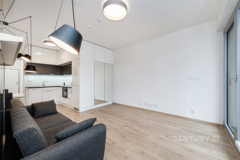 K pronájmu byt 1+kk (33 m2) s východní orientací, se zahrádkou (20 m2 a krytým balkónem (8 m2), sklepem (6 m2) v zánovním (2017) moderním domě v mimořádně klidné a tiché části Prahy 6 Liboc pod Oborou Hvězda, nedaleko Libockého rybníka a v sousedství zrekonstruovaného statku Libocký dvůr. Byt je vybaven kuchyňskou linkou (indukční varná deska, kombinovaná elektrická a mikrovlnná trouba, myčka, digestoř, lednice s mrazákem), vestavěnou výklopnou postelí (bez matrací), jídelním stolem se židlemi, polohovacím gaučem, vestavěnými skříněmi (chodba a obývací pokoj) a svítidly. Moderní koupelna se sprchovým koutem a WC je doplněna koupelnovou skříňkou s umyvadlem, zrcadlem, koupelnovými doplňky a podlahovým topením. Na podlaze v koupelně je dlažba. Ostatní podlahy v celém bytě jsou laminátové s imitací dřeva od firmy Quick Step. Hliníková okna s bezpečnostními konexovými foliemi a venkovní žaluziemi s elektrickým ovládáním, bezpečnostní dveře NEXT, alarm, kamerový systém s nahráváním záznamu z venkovních prostor, elektrická požární signalizace, optika pro přenos internetu a TV potvrzují vysoký standard tohoto bytu. Předností jsou též úložné prostory zahrnující dvě vestavěné skříně, skříňky nad kuchyňskou linkou a také prostorný sklep (6 m2) v suterénu domu. Vynikající klidná lokalita s dobrou dopravní dostupností (bus zastávka Litovický potok páteřní linka 191 z Anděla na letiště a také 108 a 168 pěšky 3 min., tram. 20 a 26 zastávka Vozovna Vokovice pěšky 7. min (dále dvě zastávky na metro A Nádraží Veleslavín), blízko nájezdu na Pražský okruh, sjezd Ruzyně (5 min.) a navíc nedaleko letiště Václava Havla (10 min.). Služby (voda, topení, odpad, výtah, úklid a osvětlení domu) bude nájemce hradit paušální částkou ve výši 3.000, Kč/měs., elektřina a internet bude převedeno na nájemce. Pronájem pouze dlouhodobě, 1 rok a déle. Kauce ve výši 40 tis. Kč., provize ve výši jednoho měsíčního nájmu plus DPH.