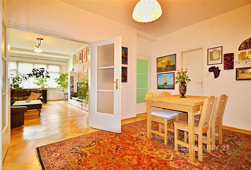 Královské Vinohrady jsou už svým názvem bezesporu jednou z nejatraktivnějších a nejcennějších lokalit v Praze. Jsou místem, kde se historie potkává s moderní výstavbou, kde pojmy jako "širší centrum" a "kvalitní občanská vybavenost" skutečně mají význam a jsou také místem, které si jako svůj domov, ať už v honosných vilách či rozlehlých bytech s vysokými stropy, vybralo nespočet velikánů své doby. A právě jednu takovou unikátní nemovitost v měšťanském duchu Vám nabízíme, konkrétně byt s dispozicí 4+1 a rozlohou 121 m2, s 3 m2 velkou lodžií do vnitrobloku, na katastrálním rozhraní Žižkova a Vinohrad, přímo na Vinohradské třídě. Byt se nachází na šestém nadzemním podlaží sedmipatrového funkcionalistického domu z přelomu 19. a 20. století, který je po revitalizaci včetně veškerých rozvodů, nových dřevěných oken s klasickou podobou a také novým výtahem dle požadovaných evropských norem. Aktuálně byla také dokončena renovace čelní fasády. Půvabný vstupní koridor a zachovalé prvky v interiéru jen dokreslují podobu klasického činžovního domu na Vinohradech. Námi nabízený byt je v průběhu doby v rekonstruovaném a udržovaném stavu, vhodný k rekonstrukci dle současných trendů, avšak zároveň ihned k užívání bez nutností technických investic. Za to Vám nabídne krásné zachovalé jasanové parkety ve všech pokojích, kamenné parapety u již zmíněných nových velkoformátových oken nebo třeba jen tradiční vzhled funkcionalistického balkonu do vnitrobloku. Současná dispozice bytu je vedena jako 4+1, nicméně může být i 5+kk či 5+1. Dominantou bytu jsou jistě dva propojené pokoje, které mají společně skoro 50 m2 a které mají zároveň vlastní vstup z haly, která jim předchází. V bytě je dále k dispozici kuchyně, ze které je vstup do pokoje, který dříve sloužil služebnictvu, komora, praktická spíž, koupelna se dvěma umyvadly a samostatná toaleta. K bytu je možné užívat sklep či společné prostory. V domě je vlastní plynová kotelna, která zajišťuje rozvod tepla a teplé vody. Dispozice: Předsíň 8 m2 Komora 1,2 m2 Spíž 2,9 m2 Hala 12,4 m2 Kuchyně 11,7 m2 Pokoj I 23 m2 Pokoj II 21,2 m2 Pokoj III 26,2 m2 Pokoj IV 5,6 m2 Koupelna 6,5 m2 WC 1,8 m2 Lodžie 3 m2 Součástí prodeje je možnost navázat na aktuální pronájem garážového stání v čerstvě zrekonstruovaných Garážích Flora, které jsou jen několik desítek metrů od domu. Pro bližší informace kontaktujte, prosím, makléře.
