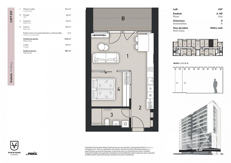 Loft ve Vanguard Prague – Prostor, kde se sny stávají skutečností Představujeme vám jedinečnou příležitost stát se majitelem loftu v ikonické rezidenci Vanguard Prague, kde se industriální design setkává s moderním životním stylem. Tento loft nabízí celkovou obytnou plochu 57,7 m2 a prostornou lodžii o velikosti 10,9 m². Prostor nabízíme v dokončení white wall, který dává vyniknout vaší kreativitě při dokončení povrchů. Vanguard Prague – bydlení jako v 5* hotelu. Rezidence Vanguard Prague představuje standard moderního života. Jako rezident můžete využívat špičkových služeb a vybavení, které jsou součástí tohoto prestižního projektu. Recepce s nepřetržitým provozem (24/7) a concierge zajistí váš komfort a bezpečí. Pro chvíle odpočinku a regenerace je k dispozici soukromé Spa s 18 m bazénem, vířivkou, saunou a párou, stejně jako plně vybavené fitness centrum. Lokalita, která má co nabídnout Rezidence se nachází v atraktivní části Modřan, která kombinuje klid rezidenční čtvrti s rychlou dostupností do centra Prahy. Vedle domu zastávka tramvaje a autobusu. Okolí nabízí bohaté možnosti aktivního i relaxačního vyžití – od cyklostezek podél Vltavy, golfového hřiště Hodkovičky až po moderní restaurace a kulturní místa. Bydleni ve Vanguard je perfektní volbou pro ty, kteří hledají prostor, který spojuje kreativitu, design, funkčnost, jedinečnost a komfort bydlení. Tato nabídka představuje více než jen bydlení – je to nová definice životního stylu. Popis nemovitosti • industriální stavba • rekonstrukce v r. 2023 • wellness • bazén • soukromé kino • recepce • 24/7 ostraha • Concierge • Restaurace v domě • Střešní panoramatická terasa • Grilovací terasa • Parkovací místa • Úložné prostory Lokalita • místo výborně přístupné autem, 20 minut centrum města, • v blízkosti zastávka MHD (tramvaj, autobus) • v dosahu síť obchodů • v těsné blízkosti projektu Vanguard na vás čeká devítijamkové hřiště Golf Country Hodkovičky. • pražská stezka A2 vede po pravém břehu Vltavy z Mánesa okolo Podolské vodárny, nádraží Praha-Modřany, ke Zbraslavskému mostu