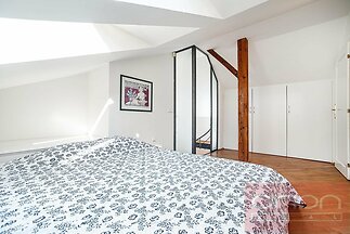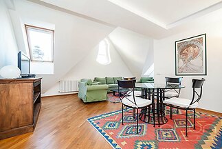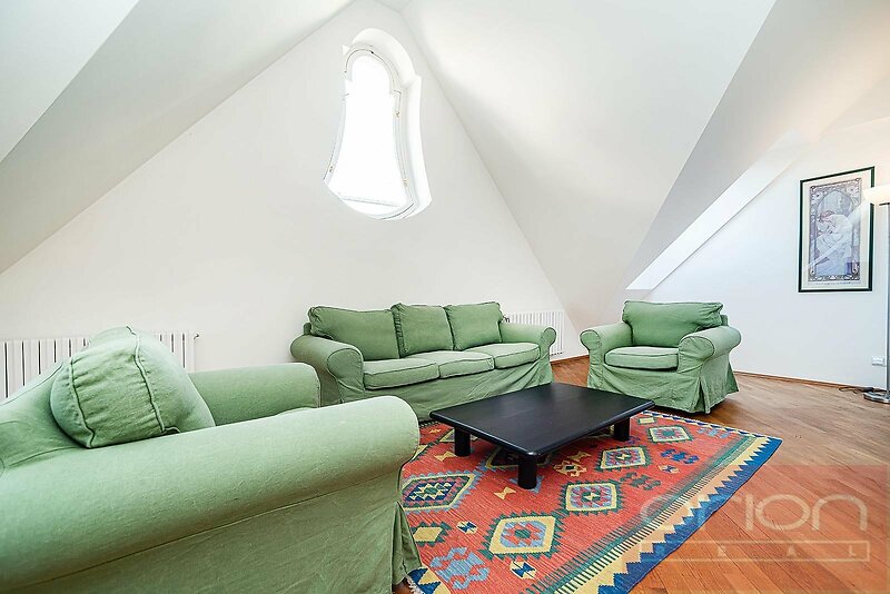 Luxusní, zařízený, mezonetový byt 3+1 v 5. a 6. patře zrenovovaného domu s výtahem a výhledem na Pražský hrad. Byt má celkovou plochu 108 m2 a nabízí v nižším patře vstupní chodbu, plně vybavenou kuchyň, obývací pokoj s jídelnou, ložnici se šatnou, koupelnu se sprchovým koutem, komoru. V horním patře je vstupní hala s vestavěnou skříní, velká ložnice se šatnou, koupelna s vanou a výhledem na Prahu. Pouze pár kroků od stanice metra Karlovo náměstí. V blízkosti je Václavské náměstí, základní škola, obchody a restaurace. K dispozici ihned.