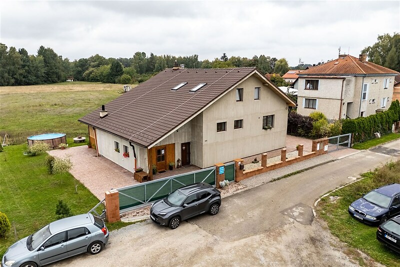 Lužnice je malebná vesnička v jihočeském kraji, plná domků, které jako by vypadly z pohádek. A přesto tu místní žijí moderním životem a společně pečují o to, aby jejich obec dál vzkvétala. Těžko se to popisuje, ale tohle místo je zkrátka oázou klidu a pohody – a má v sobě něco naprosto výjimečného. Kouzlo bydlení v Lužnici umocňuje i skvělá poloha. Sednete do auta a za sedm minut jste v Třeboni, kde najdete vše potřebné pro každodenní život. Samotná Lužnice však v tomto směru nijak nestrádá. Je tu základní škola, prodejna potravin, víceúčelové hřiště, několik restaurací, vodácký kemp s venkovním posezením a v cyklistické sezoně i stánky s občerstvením a zmrzlinou. Místní tu pravidelně pořádají společenské akce – pálení čarodějnic, ples hasičů, stavění a hlídání májky, rozsvícení vánočního stromku a mnoho dalších. Lidé se tu znají, podporují se a pomáhají si. Pokud se rozhodnete právě pro tuto nemovitost, budete zcela jistě nadšeni i ze svých nejbližších sousedů – lepší byste si snad ani nemohli přát. Když budete chtít zajet na větší nákupy nebo zažít o něco víc kultury nebo profesionálního sportu , stačí nasednout do auta nebo na vlak, a do Českých Budějovic to máte opravdu kousek. Dům samotný stojí na okraji obce, v místě, kde už není plánována žádná další zástavba. Můžete si tak být jisti naprostým klidem a trvalým nádherným výhledem na okolní krajinu – a to dokonce přímo z Vašeho obývacího pokoje. Občas kolem proběhne srnka nebo zajíc, a tak tu spojení s přírodou ucítíte každým pohledem z okna nebo pobytem na zahradě. Majitelé a jejich přátelé milují posezení pod uzavřenou pergolou, kde je zřízena malá kuchyňka s umyvadlem a napojením na elektřinu – zkrátka všechno, co potřebujete, aby Vaše „párty“ mohla kdykoli začít. Procházky a projížďky po okolí Vás doslova nadchnou. Za pár minut dojdete k největšímu českému rybníku Rožmberk a okolí je vyhledávaným rájem cykloturistiky. S tím souvisí i provozování apartmánu v suterénu domu. Ubytování zde funguje už tři roky, přináší majitelům zajímavý příjem (až 250 000 Kč ročně, který lze využít třeba ke splácení hypotéky) a hosté se sem velice rádi vrací. Energetická náročnost domu je nízká, a pokud využijete jeho plný potenciál, může být ještě nižší. Topit lze kromě plynu také dřevem (v litinových kamnech), pitnou vodu můžete čerpat ze studny na zahradě a retenční nádrž na dešťovou vodu o objemu 7,5 m³ bohatě postačí pro zalévání zahrady, napouštění bazénu nebo mytí auta. Před domem je připraveno místo pro instalaci tepelného čerpadla a vyvedeno vedení pro fotovoltaické panely, které lze umístit na střechu domu. K parkovacímu stání jsou navíc přivedeny vodiče pro solární ohřev vody a dobíjení elektromobilů. Intenzitu osvětlení i vytápění lze ovládat na dálku přes mobilní aplikaci Loxone. Dům, jeho poloha i kouzlo celé vesničky jsou prostě dechberoucí. Přijďte se o tom přesvědčit na vlastní oči.