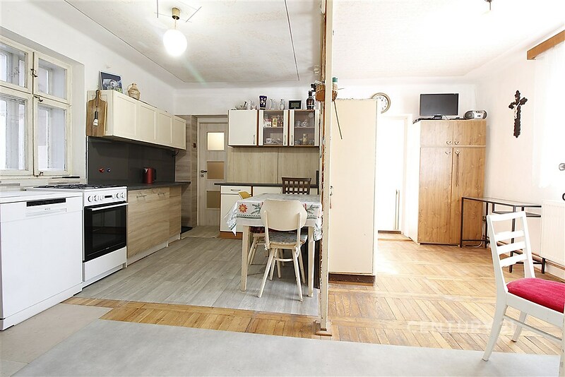 Máte už dost bydlení v rušném městě v malém bytě a hledáte pro sebe a svoji rodinu místo, kde bude mít každý člen rodiny svoje místo a k tomu ještě velký pozemek pro realizaci všech pěstitelských či chovatelských snů. Za cenu bytu 1+1 v Brně Vám nabízím prostorný rodinný dům 4kk s pozemkem o výměře 3.692m2 v obci Pornice, 30 minut od Brna a 10 minut od Vyškova. V domě najdeme velkou obytnou kuchyni s prostorem pro obývací část, malou ložnici a velký pokoj, který lze rozdělit na dva menší vzájemně průchozí a ještě jeden velký pokoj v patře domu, kde je v současné době ložnice s obývacím pokojem. V přízemí domu ještě nalezneme malou koupelnu s vanou průchozí na wc a několik dalších místností, které lze přebudovat na obytné či hobby místnosti. Dům je postaven do tvaru L a v jeho druhé části je situovaná prostorná stodola, kde můžete parkovat několik aut, či zemědělské stroje a ještě si pod střechu uložit vše, co chcete mít v suchu. Na dvorku domu nalezneme dva sklepy. Jeden cihlový a druhý betonový se zděným domečkem. Rodinný dům je postavený ze smíšeného zdiva se sedlovou střechou, která má na části pálené tašky a na části eternitové šablony. Dům je suchý, vlhkost se objevuje pouze u komínu, do kterého vrchem prší. Toto je řešitelné umístěním komínové stříšky. Rodinný dům je napojen na veřejný vodovod, plynofikaci a elektrickou energii. Na dvoře a zahradě se nachází dvě studny a jímka s přepadem. V současné době se v obci buduje splašková kanalizace. Stav domu je původní, bez rekonstrukcí. Drobnou rekonstrukcí prošla kuchyně a koupelna, kde se instalovaly nové rozvody, odpady vody a z části nová elektroinstalace. Byl zde realizován i částečný obklad. V kuchyni jsou instalovaná nová pěkná krbová kamna, nyní nedopojená do komína. Komíny v domě jsou původní. Topení v domě zajišťuje nový plynový kondenzační kotel a nové měděné rozvody do nástěnných deskových radiátorů. Rozvody topení jsou měděné, instalované po zdi. Okna v domě jsou původní dřevěná, kastlová. Součástí domu jsou i hospodářské stavby přístupné ze dvora. Celková zastavěná plochu domu, přístavku a dvora je 839 m2. K domu náleží i nadstandardně velká zahrada o výměře 2853 m2. A jak je na tom Pornice s občanskou vybaveností? V obci se nachází mateřská škola, vše ostatní nalezneme v blízkém městě MorkoviceSlížany, které je vzdálené 1,5 km od Pornic a nachází se zde obchody, pošta, základní škola, restaurace či lékárna. V blízkém okolí nalezneme i dva rybníky, kam si můžete udělat příjemnou procházku třeba s pejskem. Pokud hledáte pro svoji rodinu klidné místo, kde se všichni sousedé znají, domy se nezamykají a nemusíte se bát spát u otevřeného okna, je tato nabídka právě pro vás. Hypotéku Vám rád zajistíme.