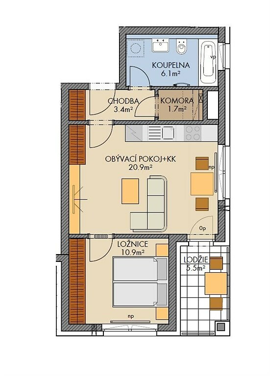 Pronájem bytu / 2+kk / 44 m2 - Pronájem bytů typu 2+kk za nabídkovou cenu 21 900 Kč. Vybraná nemovitost - 2+kk. Typ vlastnictví družstevní. Plocha nemovitosti je 44 m2. Dostupné od 01.02.2026.