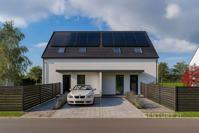 Moderní nízkoenergetické bydlení 4+kk se zahradou v přírodě, pár minut od Příbrami V rámci projektu Zelená Narysov nabízíme k prodeji jednotku 4+kk o užitné ploše 111,76 m² s vlastním pozemkem o velikosti 473 m². Tento dům je součástí dvojdomu, který obsahuje dvě samostatné bytové jednotky, každá s vlastním vstupem, oplocenou zahradou a parkovacími stáním. Tím je zajištěno maximální soukromí a komfort. Každá jednotka je navržena s důrazem na komfort a energetickou úspornost. Součástí vybavení je tepelné čerpadlo vzduch–voda s podlahovým vytápěním, fotovoltaický systém, plastová okna s trojsklem a venkovními roletami, dokončené koupelny, kvalitní podlahy, interiérové dveře, oplocení pozemku a zpevněné plochy pro parkování. Součástí projektu je rovněž plánovaná výstavba nabíjecích stanic pro elektromobily, což výrazně podtrhuje moderní a ekologický charakter bydlení. Dispozice jednotky zahrnuje světlý obývací pokoj s kuchyňským koutem a přímým vstupem na zahradu, tři ložnice, koupelnu s vanou i sprchovým koutem, samostatné WC a technickou místnost. Jednotka je připravena k nastěhování, s možností individuálního dokončení na klíč dle požadavků klienta. Projekt Zelená Narysov nabízí jedinečnou kombinaci přírodního klidu, moderního bydlení a výborné dostupnosti do Příbrami a Prahy. V blízké budoucnosti bude v lokalitě zřízena školka a dětské hřiště, které doplní kvalitní občanskou vybavenost. Tato nemovitost je ideální volbou pro všechny, kdo hledají energeticky úsporné, moderní a komfortní bydlení s důrazem na ekologii a kvalitní životní styl. Pro více informací či sjednání prohlídky nás neváhejte kontaktovat.