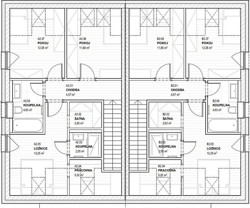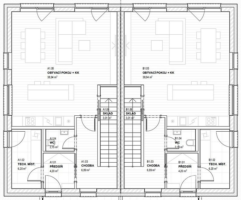 Moderní nízkoenergetický dům 4+kk se zahradou a pracovnou, v klidné lokalitě u Příbrami V projektu Zelená Narysov nabízíme k prodeji novostavbu prostorného rodinného domu 4+kk o podlahové ploše 124,49 m² s pozemkem o velikosti 445 m². Jednotka je součástí moderního dvojdomu, ve kterém má každá bytová jednotka vlastní vstup, soukromou oplocenou zahradu a dvě parkovací místa na zpevněné ploše. Dům je navržen v nízkoenergetickém standardu, který kombinuje vysoký komfort a dlouhodobou úsporu provozních nákladů. Součástí ceny je tepelné čerpadlo vzduch–voda napojené na podlahové vytápění, fotovoltaický systém, plastová okna s trojsklem a venkovními roletami, dokončené koupelny, finální podlahy, interiérové dveře, oplocení a parkování na vlastním pozemku. Dispozice domu je navržena s důrazem na praktické členění a rodinné fungování – vzdušný obývací pokoj s kuchyňským koutem má přímý vstup na terasu a zahradu. Dále jsou zde tři ložnice, samostatná toaleta, koupelna s vanou a technická místnost. Velká hlavní ložnice nabízí příjemný bonus v podobě vlastní koupelny se sprchovým koutem, šatny a oddělené pracovny – ideální kombinace pro pohodlné soukromí i home office. Součástí projektu je možnost dokončení domu na klíč přesně dle vašich představ, včetně kuchyňské linky, vestavěného nábytku nebo terasy. Zelená Narysov je moderní rezidenční projekt situovaný v malebném prostředí nedaleko brdských lesů. Klidná atmosféra menší obce se zde přirozeně doplňuje s výbornou dostupností do Příbrami i Prahy. Lokalita se postupně rozvíjí – v budoucnu zde vznikne školka, dětské hřiště i nabíjecí stanice pro elektromobily, což dále zvyšuje kvalitu života v místě a přirozenou hodnotu vaší nemovitosti. Tento dům je ideální volbou pro rodinu, která hledá moderní a úsporné bydlení s dostatkem prostoru, soukromí a přírody. Rádi vás provedeme osobně. Kontaktujte nás pro více informací nebo domluvení prohlídky.