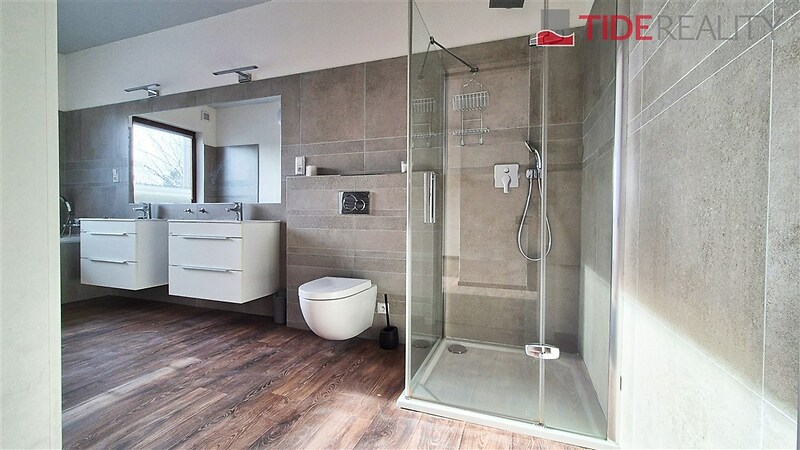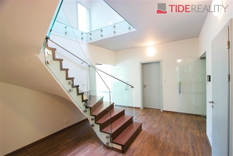 Moderní vila je umístěna v klidné lokalitě Kunratic, přímo u lesoparku Kunratická bažantnice a v docházkové vzdálenosti od rybníka Šeberák. V přízemí se nachází velký obývací pokoj s plně vybavenou kuchyní a jídelnou, ložnice pro hosty s vlastní koupelnou. Obývací pokoj a jídelna mají přímý vstup na terasu a zahradu. V prvním patře je 5 ložnic a 3 koupelny. Hlavní ložnice má ensuite koupelnu a šatnu. Dům má podlahové vytápění s tepelným čerpadlem. Zahrada je vybavena automatickou závlahou. Garáž pro 2 auta. PENB třída C. Volný od prosince 2025.