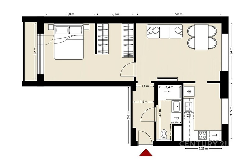 Možná vás překvapí uspořádání tohoto bytu v Ráji. Při rekonstrukci došlo díky stavebním úpravám k prohození obýváku a ložnice. Teď je ložnice orientována do klidného vnitrobloku. Prostor je částečně rozdělen příčkou, což umožňuje optické oddělení spací části nebo vytvoření soukromí pro rodiče s dítětem. Obývací pokoj přímo navazuje na kuchyni, která je vybavena varnou deskou s digestoří, troubou a myčkou. Lednici si zajistí nájemník vlastní. Elegantní sprchový kout využívá celou šířku koupelny a poskytuje tak pohodlí při osobní hygieně. Bylo pamatováno i na místo pro pračku. K bytu náleží sklepní kóje. V současné době probíhá na domě výstavba balkonů. Dům se nachází v místě s výbornou občanskou vybaveností v docházkové vzdálenosti. V blízkosti najdete obchody, služby i zastávky MHD. Pro odpočinek a sport je jen pár minut chůze vzdálený lesopark. Byt 2+1 v 1. patře bez výtahu je nezařízený a připravený k nastěhování pro ty, kteří hledají klidné a vkusné bydlení. Měsíční nájem: 11 000 Kč Zálohy na služby: 2 500 Kč Jistota (kauce): 27 000 Kč Provize RK: 13 500 Kč (rezervační poplatek) Elektřinu si nájemník přepíše na své jméno. Pro více informací nebo domluvení prohlídky mě kontaktujte.