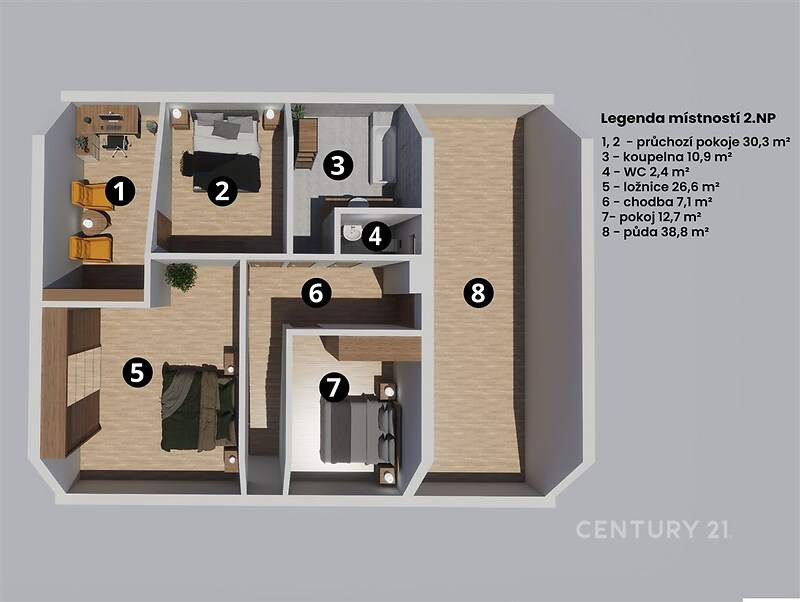 Na adrese Vlkošská 838, Vracov nabízíme ke koupi velmi dobře udržovaný rodinný dům s nadstandardní užitnou plochou a širokými možnostmi využití. Dům disponuje užitnou plochou cca 307 m², je kompletně podsklepený a nachází se na pozemku o výměře 854 m². Díky své dispozici je vhodný nejen pro komfortní rodinné bydlení, ale také pro podnikání z domu. V suterénu se nachází technické a provozní zázemí – skladovací prostory, prádelna, dílna se vstupem na zahradu, klubovna a místnosti vhodné pro kanceláře, služby či jiné podnikatelské využití. Průjezd umožňuje vjezd z ulice až na zahradu. Dům je vybaven fotovoltaickou elektrárnou Columbus instalovanou v roce 2023 s výkonem 5,64 kWp a dvěma bateriemi o celkové kapacitě 10,65 kWh, což výrazně snižuje provozní náklady. Vytápění zajišťuje plynový kondenzační kotel Dakon a ohřev vody plynový bojler. Přízemí tvoří vstupní hala, koupelna se sprchovým koutem a WC, otevřená pracovna vhodná jako home office nebo klientské zázemí, kuchyně s jídelnou se vstupem na terasu a prostorný obývací pokoj. V patře se nachází několik samostatných pokojů, koupelna s vanou, samostatné WC, klimatizace a půdní prostor s možností dalšího využití. Nemovitost se nachází v žádané obci Vracov, která nabízí dobře fungující infrastrukturu – veškeré služby, obchody, školy i sportovní vyžití jsou v dosahu. Obec je dopravně dostupná do Kyjova a Hodonína, s veřejnou dopravou včetně autobusových spojů do okolních měst a blízkým městem Bzencem. Vracov je součástí jihomoravské vinařské oblasti s živou folklorní tradicí, včetně místních slavností a kulturních akcí, které podtrhují společenský život obce. Zahrada je přístupná z domu, průjezdem z ulice i samostatným příjezdem ze zadní strany pozemku, což umožňuje další využití – například výstavbu menšího domku, zahradního zázemí, letní kuchyně s posezením nebo samostatné garáže. Na terasu navazuje bazén 7 × 3 m a kvelbený sklep. Nemovitost nabízí nadstandardní prostor, praktické řešení a velmi zajímavý rozvojový potenciál. Pro více informací nebo domluvení prohlídky mě neváhejte kontaktovat. Prohlídky začnou v druhé polovině ledna, volejte a buďte mezi prvními. Reality srdcem P.P.