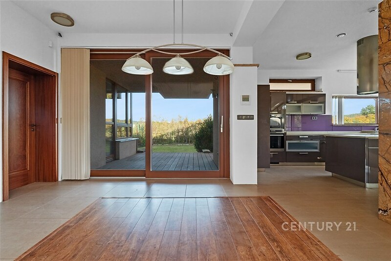 Na samotném konci klidné slepé ulice Bohuslava Martinů v Letovicích stojí výjimečná vila, která v sobě spojuje promyšlenou architekturu, technologickou dokonalost a absolutní soukromí. Dům byl postaven v letech 2008–2009 v tom nejvyšším možné standardu, a od té doby je udržován na nejvyšší úrovni. Celková plocha pozemku činí 2 002 m², z toho zastavěná plocha 232 m² a udržovaná zahrada s hřištěm a zahradním domkem 1 770 m². Užitná plocha domu je celkem 329 m² a je rozdělena do tří podlaží. Dispozice domu je aktuálně 5+kk, s možností rozšíření na 6+kk díky připravenému prostoru ve sklepním podlaží. Přízemí domu je srdcem celé vily. Otevřený obytný prostor s kuchyní a jídelnou o rozloze 63,75 m² působí vzdušně a reprezentativně. Dominantou interiéru je krb s onyxovou stěnou, do které jsou zasazeny polodrahokamy. Z obývací části je přímý vstup na terasu a do zahrady, která nabízí naprosté soukromí a klid. V přízemí se dále nachází luxusní master bedroom s vlastní koupelnou, samostatné WC a vstup do dvojgaráže přímo z interiéru. V patře se nachází tři neprůchozí pokoje, koupelna s toaletou a terasa s výhledem do zahrady. Suterén je navržen tak, aby kombinoval technické zázemí s prostorem pro relaxaci nebo práci. Nachází se zde prádelna se sušárnou, technická místnost, úložné prostory a prostorná pracovna s možností přestavby na fitness či wellness zónu. Nechybí zde ani vinný sklep a prostor pro uskladnění ovoce a zeleniny. Technické zázemí domu je výjimečné svou komplexností i precizností. Dům je napojen na hlubinný zemní vrt o hloubce 156 m s tepelným čerpadlem o výkonu 12 kW. Součástí je fotovoltaická elektrárna o výkonu 12 kWp s watrouterem pro optimalizaci využití energie a akumulační nádrží o objemu 1000 l. Systém přepínání fází a inteligentní správy elektřiny zajišťuje maximální energetickou efektivitu. Rekuperace značky ATREA umožňuje manuální regulaci výměny vzduchu a venkovní registr předehřívá vzduch v zimě a ochlazuje v létě. Interiér působí elegantně a kvalitně. Žulové parapety v celém domě, vinylové podlahy a velkoformátová dlažba. Každý detail byl navržen s ohledem na dlouhodobou funkčnost a estetiku. Dům má celkem tři koupelny a nechybí ani zabezpečovací systém s pohybovými čidly. Na pozemku se nachází také i vlastní vydatný vrt hluboký 16 metrů se dvěma prameny (v 10 a 12 metrech) a výkonem až 2 m³/hod. Voda je přivedena do domu přes mezistanici, aktuálně funkční napojení je přímé ze studny. Součástí zahrady je bazén se skimerem a možností elektrického ohřevu. Tato vila není jen domem, ale je to promyšlený systém pohodlí, bezpečí a moderního bydlení. Každý metr čtvereční nese rukopis precizní práce, důrazu na kvalitu a smyslu pro detail. Pokud hledáte nemovitost, která spojuje luxus, technologickou vyspělost a naprosté soukromí, tato vila v Letovicích vás nadchne od prvního okamžiku.