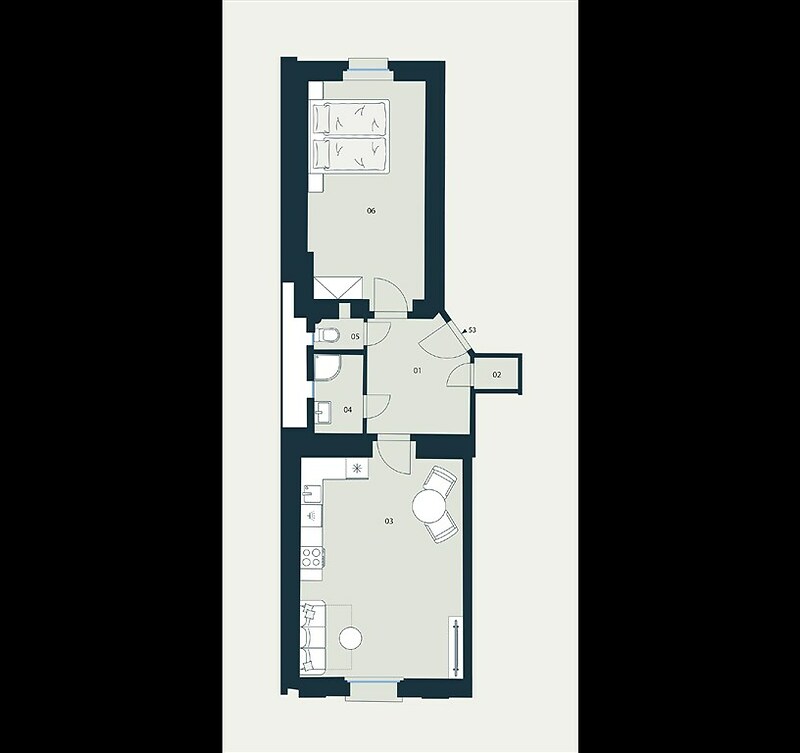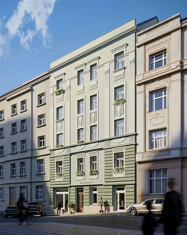 Nabízená bytová jednotka č. 53 o dispozici 2+kk a celkové ploše 58,6 m² se nachází v pečlivě zrekonstruovaném činžovním domě, v 5. nadzemním podlaží. Součástí jednotky je sklepní kóje o velikosti 1,5 m². Jednotka je dokončena do standardu „shell & core“, tedy k dokončení dle vlastních potřeb. Celý dům prochází citlivou rekonstrukcí a rezidenti budou moci využívat nové společné prostory jako jsou kolárna, kočárkárna nebo klidný vnitroblok určený k odpočinku. Lokalita nabízí příjemné rezidenční prostředí s kompletní občanskou vybaveností v okolí. V docházkové vzdálenosti jsou kavárny, restaurace, obchody, školy, zdravotnická zařízení i zastávky MHD. Na dosah je také městská zeleň a parky, které vybízejí k odpočinku či sportu.
