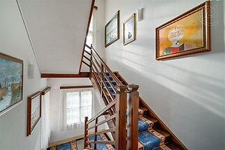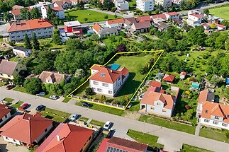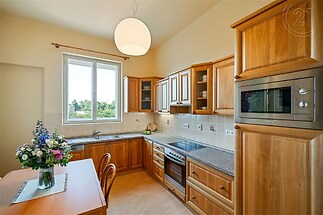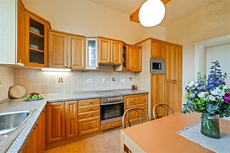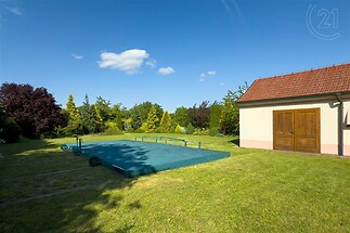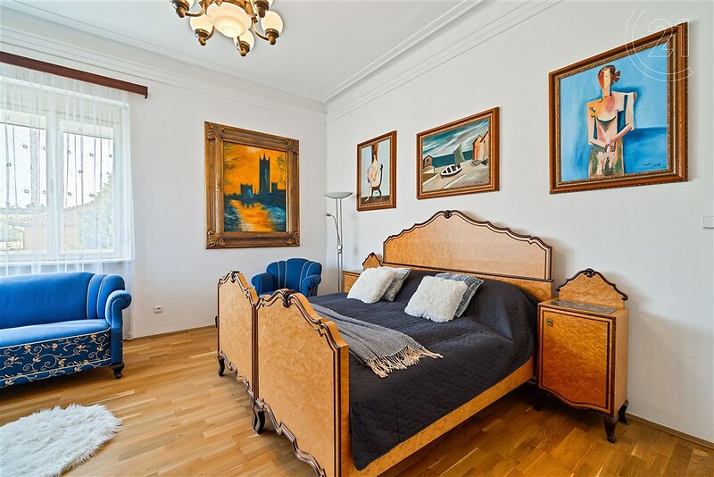 Nabízím do prodeje prvorepublikovou vilu v Šumné u Znojma. Jedná se o nemovitost postavenou v r. 1932. Díky současným majitelům a jejich citlivému přístupu během rekonstrukce bylo zachováno genius loci této vily včetně většiny vnitřního vybavení. Celková užitná plocha vily činí 405 m², celková výměra pozemku činí 1796 m². Vila je rozdělená do tří samostatných bytových jednotek v 1. a 2. nadzemním podlaží se nachází byty 3+1, půdní vestavba pak byla dispozičně vyřešena jako 1+kk. V domě se nacházejí celkem 3 koupelny s toaletou, v přízemí domu pak ještě další samostatné WC u východu do zahrady. Dům je částečně podsklepen, přičemž bylo v tomto prostoru zbudováno velmi příjemné posezení/vinotéka. Vila je napojena na tepelné čerpadlo, které zajišťuje teplo k vytápění i teplou vodu. Samozřejmostí je napojení na veřejný vodovod a kanalizaci, nicméně ve sklepě se také nachází studna, která je využívána pro potřeby zahrady. Okna disponují i původními polohovatelnými předokenními žaluziemi. V zadní části domu se nachází technické zázemí nemovitosti garáž, která je aktuálně využívána jako dílna, technická místnost s tepelným čerpadlem pro dům a také pro bazén a dále pak kryté posezení pro relaxaci a pobyt venku. Stejně jako samotná vila i venkovní prostory jsou v čistém a udržovaném stavu. Po obvodu pozemku jsou vzrostlé stromy a keře, které zajišťují dostatek soukromí. V zahradě se nachází vyhřívaný bazén. Jelikož je vila nabízena včetně vnitřního vybavení, je vhodná k okamžitému nastěhování. Ideální je pro vícegenerační rodinu, které hledá klid, ale stále alespoň základní občanskou vybavenost. V Šumné se nachází např. mateřská i základní škola (1. i 2. stupeň), praktický lékař pro dospělé, pro potřeby přesunu je možné kromě autobusu využít i vlakové spojení. Blízkost Vranovské přehrady však vybízí využít rekreační potenciál a jednotlivé byty nabídnout i ke krátkodobým pronájmům. PENB (průkaz energetické náročnosti budovy) nemovitost spadá do kategorie D. Pro bližší informace ohledně nemovitosti, možnostech financování či domluvení termínu prohlídky mne neváhejte kontaktovat.