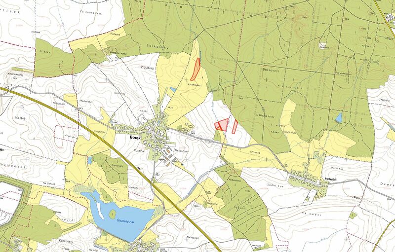 Nabízím k prodeji soubor pozemků ve výlučném vlastnictví, které se nacházejí ve dvou katastrálních územích Borek a Hrachoviště u Býště, okres Pardubice. Pozemky jsou přehledně rozděleny dle listu vlastnictví a katastrálních území. Katastrální území Borek (LV 81): V tomto katastru se nachází celkem 7 parcel s celkovou výměrou 35 602 m. Pozemky tvoří ornou půdu, trvalý travní porost a vodní plochu. Parcely: parc. č. 353/25 orná půda, 3 239 m parc. č. 353/40 trvalý travní porost, 1 572 m parc. č. 378/2 vodní plocha, 838 m parc. č. 378/26 trvalý travní porost, 13 097 m parc. č. 378/44 vodní plocha, 523 m parc. č. 391/6 orná půda, 11 365 m parc. č. 391/14 orná půda, 3 m Souhrn výměr v k. ú. Borek: 14 607 m orná půda 14 669 m trvalý travní porost 1 361 m vodní plocha Katastrální území Hrachoviště u Býště (LV 191): V tomto katastru jsou evidovány 2 parcely s celkovou výměrou 303 m. Parcely: parc. č. 140/10 orná půda, 5 205 m parc. č. 140/20 ostatní plocha, 63 m Souhrn výměr v k. ú. Hrachoviště u Býště: 5 205 m orná půda 63 m ostatní plocha Celková výměra všech nabízených pozemků činí 35 905 m. Nezaujala vás tato konkrétní nabídka? Staňte se členem MojePole Plus a získejte výhodné nabídky přímo do své e-mailové schránky. Pro nezávaznou poptávku využijte formulář dostupný na našich stránkách. Pokud máte zájem nebo dotazy, neváhejte mě kontaktovat na uvedeném telefonním čísle nebo e-mailové adrese. V uvedené ceně je již zahrnuta provize. Majitel si vyhrazuje právo vybrat kupujícího na základě nabídky.