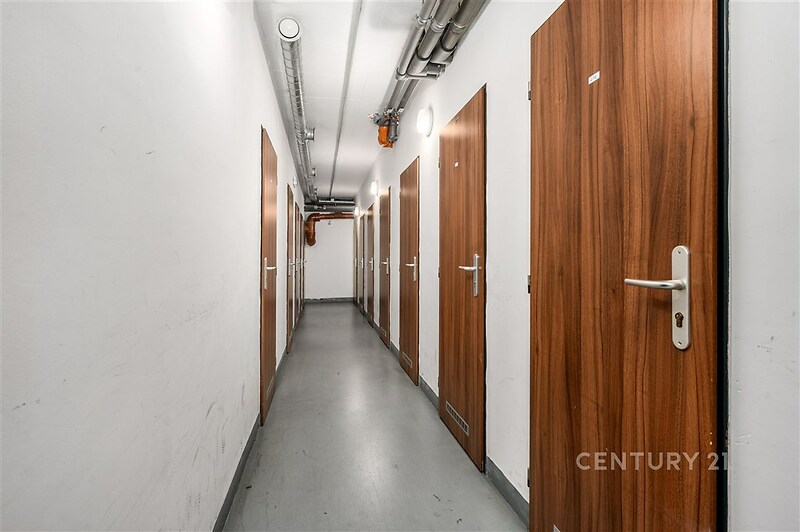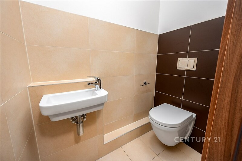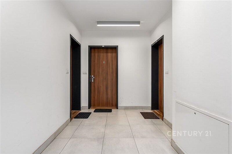 Dispozice a vybavení: Vstupní chodba, koupelna s vanou, umyvadlem, pračkou a samostatná toaleta, obývací pokoj s kuchyňským koutem, vybaveným kuchyňskou linkou ( multifunkční trouba a varná deska, digestoř, lednice a myčka nádobí) a ložnice. K bytu náleží sklep a vyhrazené garážové stání v suterénu domu.