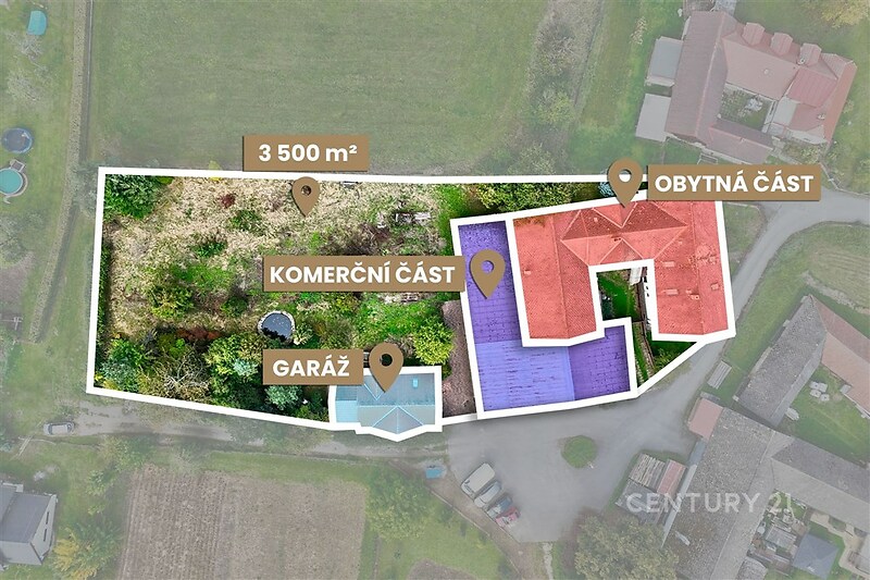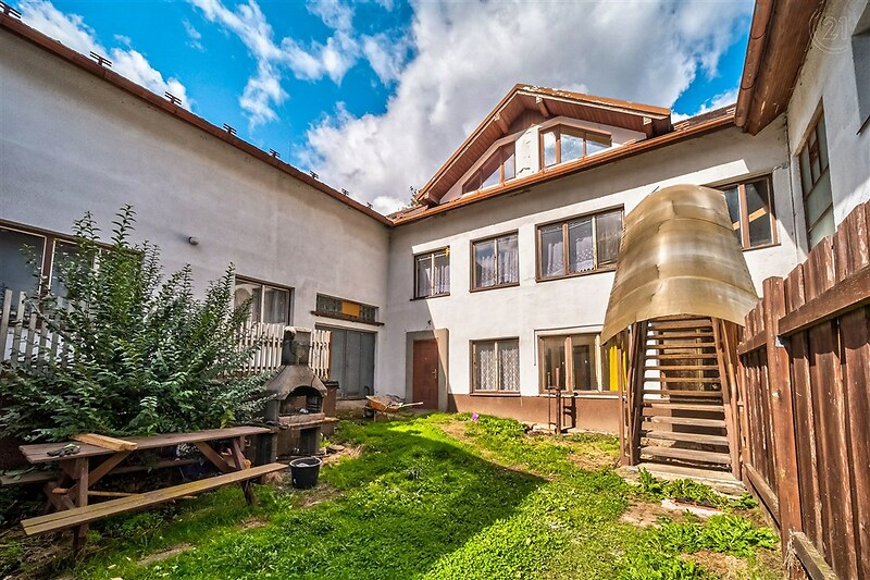 Nabízím prostorný objekt, který se nachází na prestižní adrese Hříběcí 25, 39301 Horní Cerekev. Tato nemovitost je ideální volbou pro ty, kteří hledají prostory k podnikání v srdci Vysočiny. V tomto objektu lze realizovat: ubytovnu, výrobní areál, kanceláře, svatební areál, hospodu atd. Dispozice a rozložení místností a orientační velikost je uvedena v pláncích, které jsou přiloženy u fotografií nemovitosti. Nejprve je zobrazen plánek a za ním následují fotografie místností, které jsou součástí plánku. Vzhledem k velikosti a přehlednosti byl vytvořen i scan nemovitosti. Odkaz na něj je možné obdržet po domluvě s makléřem nemovitosti. Dům má celkovou zastavěnou plochu 603 m² a nabízí užitnou plochu 460 m². Dalších 160m² nabízí prostor podkroví, který je předělán do obytného stavu. V domě najdeme tři obytné bytové jednotky, které jsou rozložené ve dvou podlažích. Každá bytová jednotka má svůj vlastní vchod. Jejich rozdělení a popis je uveden v 3D půdorysech. V současné chvíli slouží jako ubytování. Nájemce může pokračovat a nebo bude nájemní vztah ukončen před podpisem kupní smlouvy. Součástí nemovitosti je i balkón a sklepy o rozloze 45 m². Dům je také vybaven garáží a dalšími parkovacími místy přímo u domu na ulici. Součástí nemovitosti jsou i hospodářské budovy: stodola, dílny, sklady o celkové rozloze 760 m². Součástí této plochy je i velký zateplený sklad a dvě garáže. Jednu z garáží lze změnit na rodinný dům o velikosti až 120 m², což nabízí skvělou příležitost vybudovat druhý dům na pozemku. K pozemku o celkové rozloze 3500 m² náleží i udržovaná zahrada s přírodním jezírkem. Interiér domu je ve velmi dobrém stavu, což umožňuje novým majitelům nastěhovat se bez nutnosti dalších významných investic do úprav. Přestože dům neprošel modernizací na klíč, jeho současný stav a kvalita použitých stavebních materiálů (smíšené konstrukce) poskytují dobrý základ pro případné přizpůsobení podle osobních představ nového majitele. Rozvody topení jsou nově udělané. Dům je napojen na vodovod a má svojí vlastní jímku s trativodem. Topení je řešeno tuhýma palivama. Přímo v obci staví vlak i autobus. Města jsou vzdálena: Horní Cerekev: 4 minuty, Pelhřimov: 20 minut. Nemovitost lze financovat hypotečním úvěrem. S celým procesem hypotéky Vám rád pomůže náš hypoteční specialista. V případě zájmu či dotazů kontaktujte makléře nemovitosti.